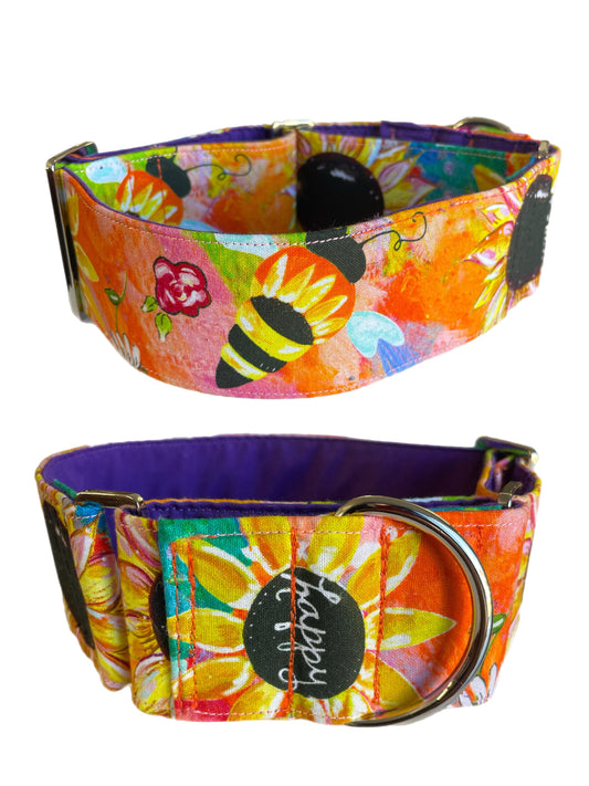 Happy buzz bees martingale collar in cotton fabric 50mm wide
