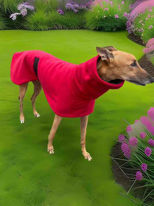 Greyhound deluxe style coat in luscious red washable extra thick double polar fleece