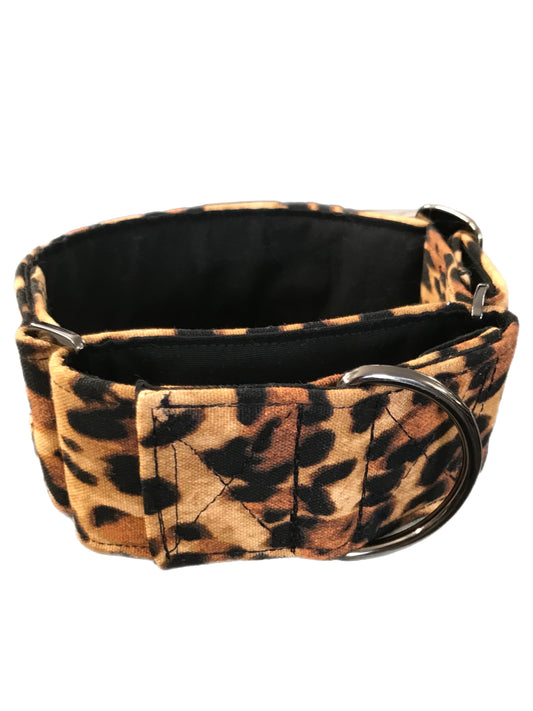 Leopard print Greyhound Martingale collar cotton covered 50mm width sturdy cotton