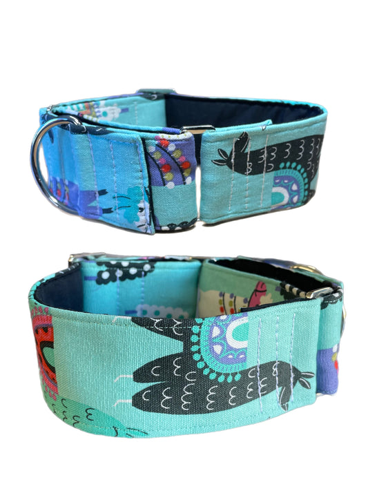 Modern llama greyhound Martingale collar cotton covered 50mm width