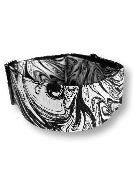 Monochrome swirls in b&w greyhound 50mm martingale cotton super soft