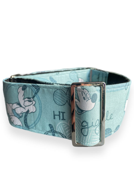 Mickey Mouse & Pluto on a soft sage, wide greyhound and whippet Martingale collar cotton super soft