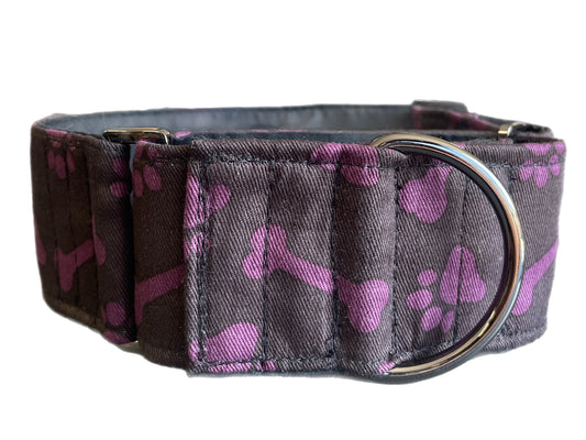 Purple bones design greyhound Martingale collar cotton covered 50mm width