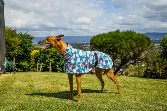 Pink with bronze dotty prints Greyhound coat deluxe style, summer rainwear, washable