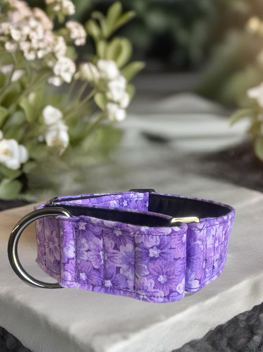 Purple floral greyhound Martingale collar cotton covered 38 & 50mm width