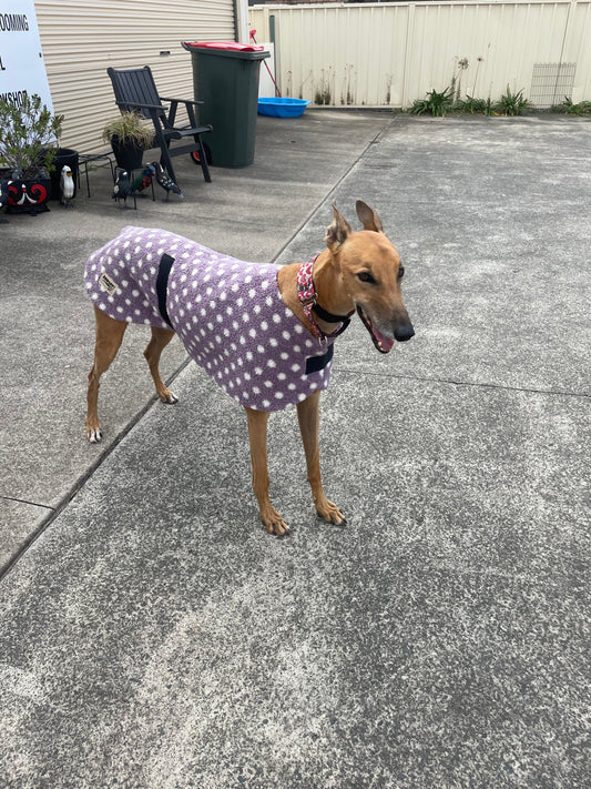 Snuggly autumn classic style Greyhound mid weight teddy fleece coat lined with fleece washable