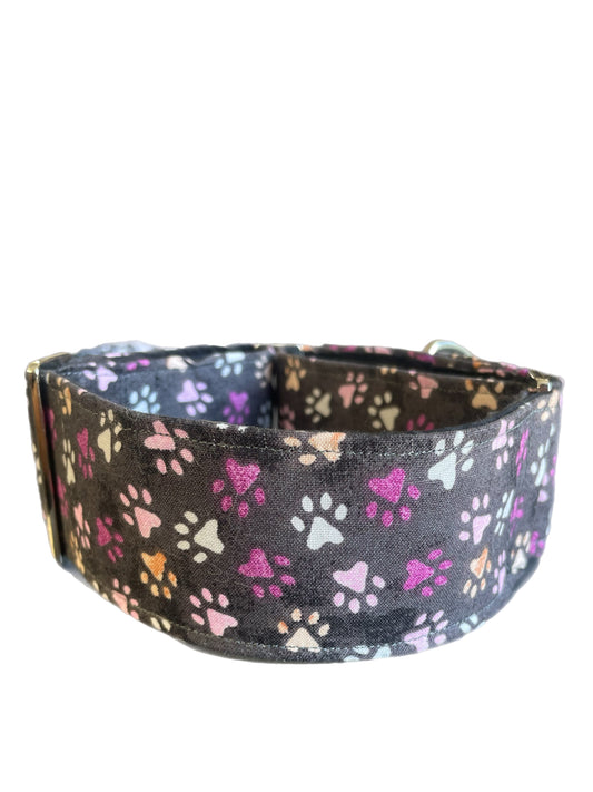 Smoky Grey & mauve with paws martingale collar greyhound in cotton super soft