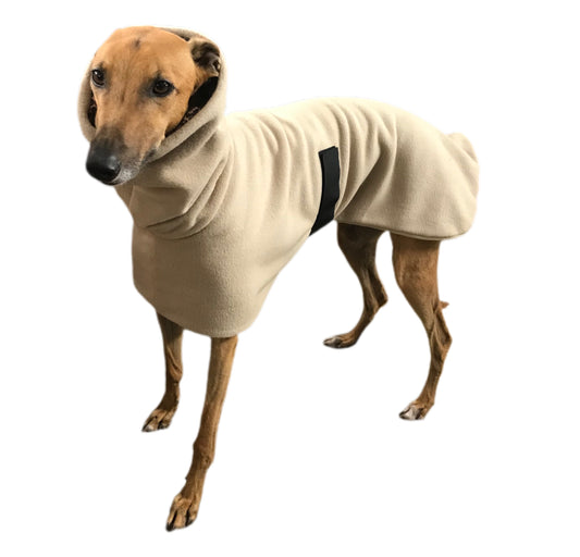 Simply beige Greyhound Deluxe coat rug thick polar fleece washable extra wide neck hoodie