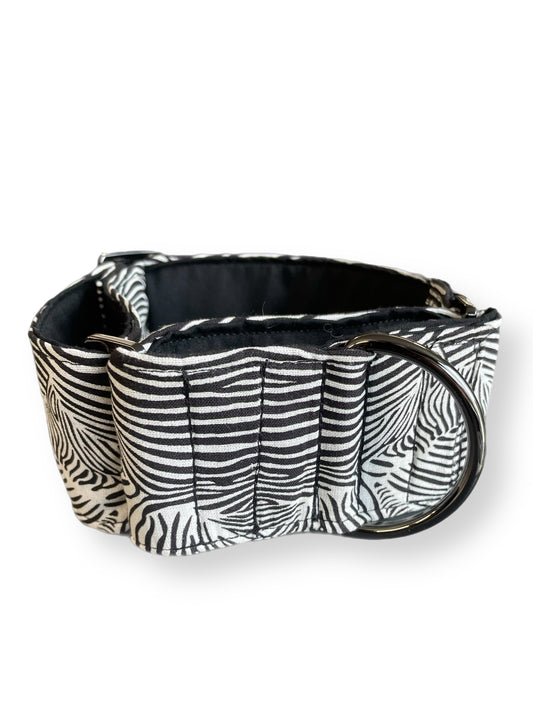 Zebra print b&w greyhound wide Martingale collar cotton covered super soft