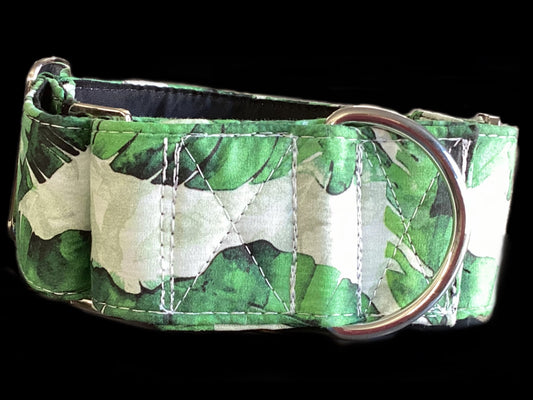 Wide Martingale collar summer fresh ‘banana leaves’ cotton 50mm width