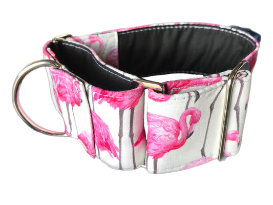 Wide Martingale cotton covered collar pink flamingo 50mm width greyhound super soft