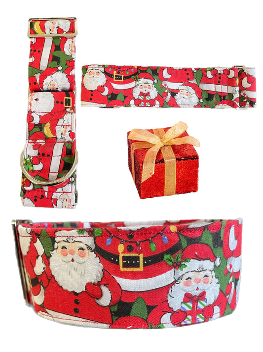 Christmas with Santa Greyhound Martingale collar cotton covered 50mm width