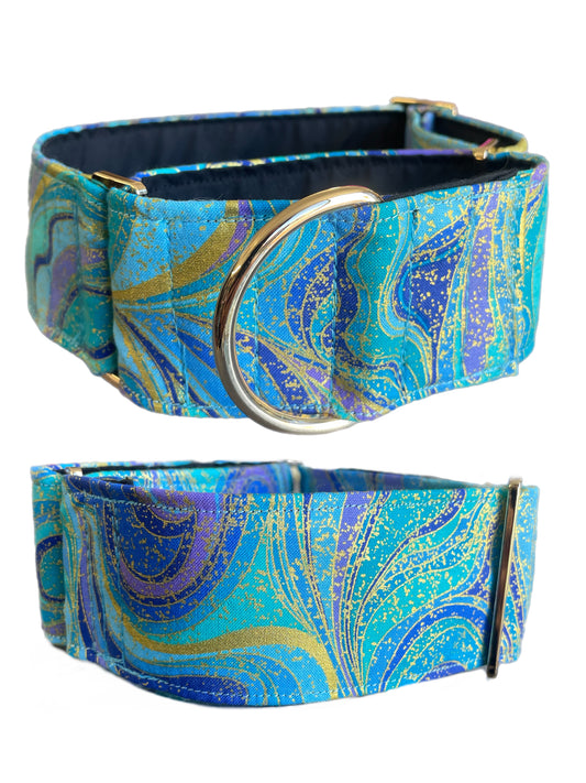 Cotton covered greyhound Martingale collar aqua turquoise gold shimmer wide super soft