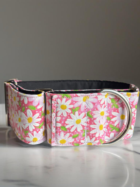 Fresh pink daisies design Cotton covered greyhound Martingale collar wide super soft