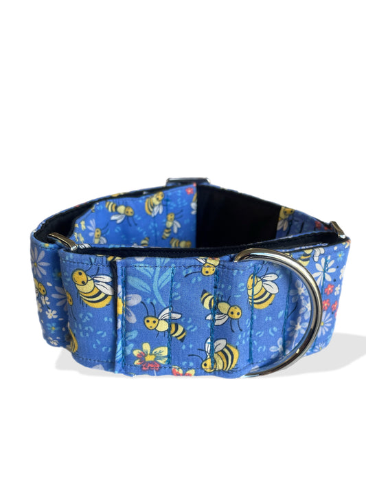 Bee happy in powder blue Cotton covered greyhound Martingale collar wide super soft