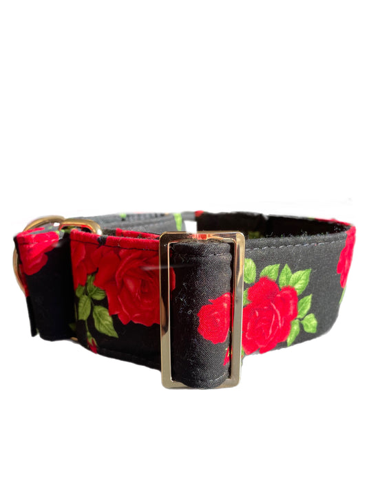 Beautiful red roses on black Martingale collar greyhound 5cms super soft cotton fabric