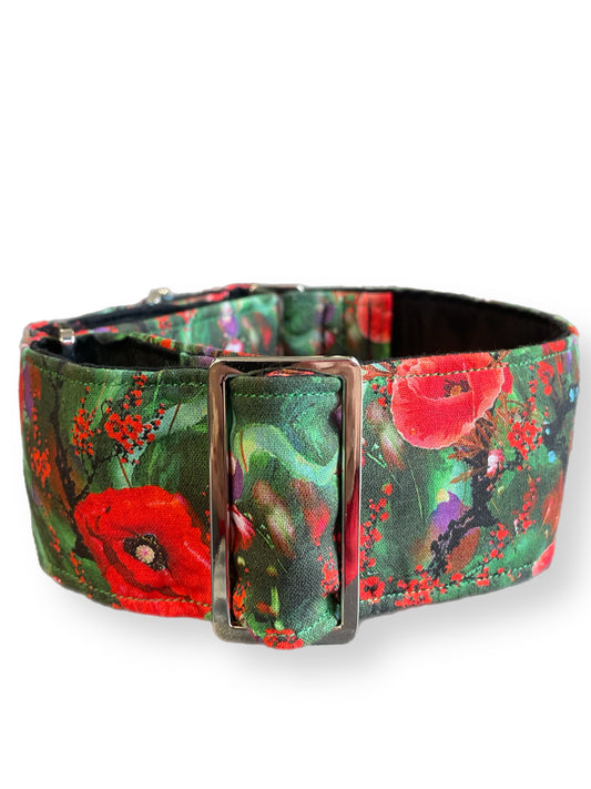 Beautiful red poppies on lush green greyhound Martingale collar cotton covered 50mm & 38mm super soft