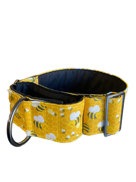 Bee happy yellow greyhound Martingale collar cotton covered 50mm & 38mm width super soft