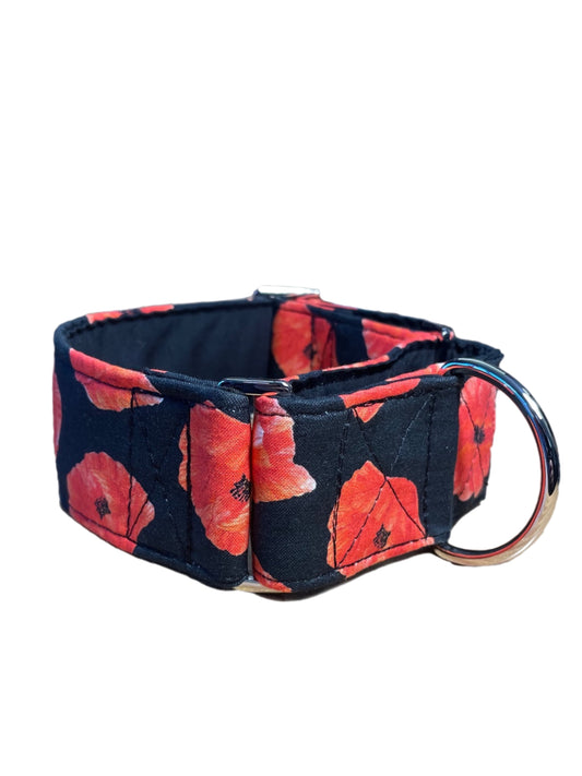 Beautiful poppies black and red greyhound Martingale collar cotton covered in 50mm & 38mm