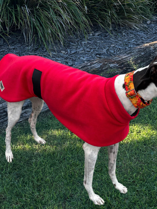 Rich red thick and snuggly fleece sports