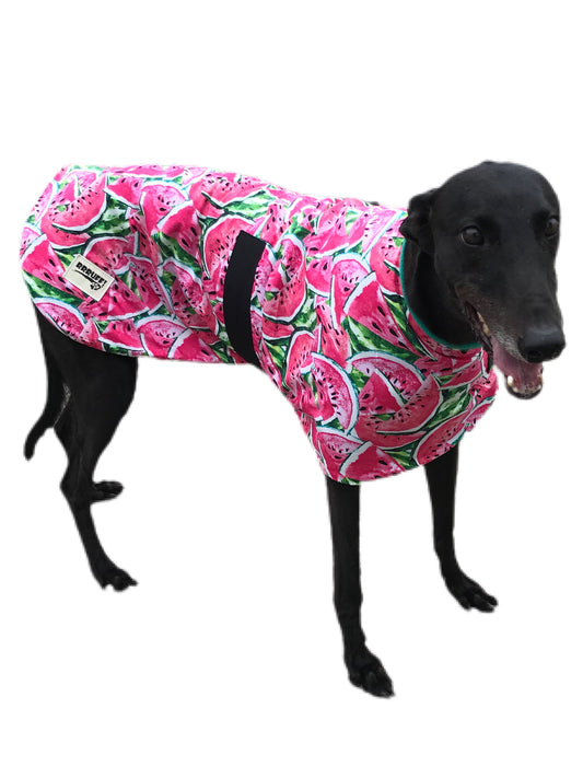 Spring/Autumn range classic style Greyhound ‘watermelon’ coat in cotton & fleece washable