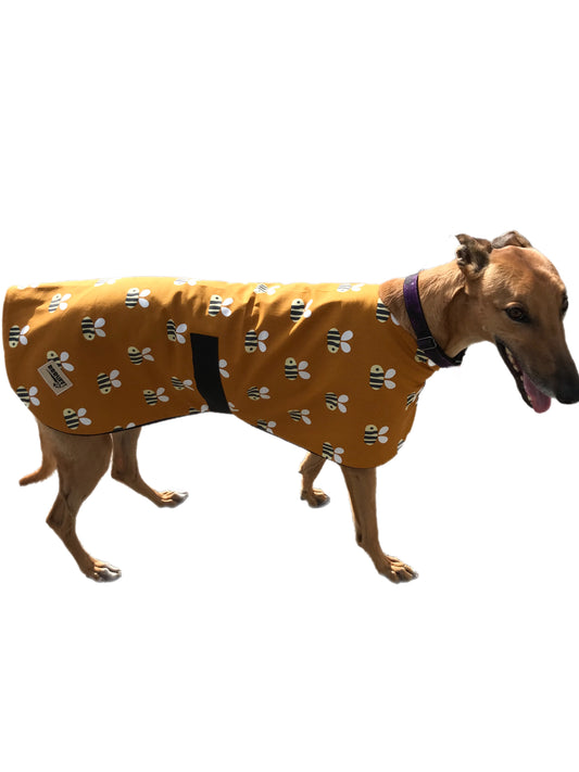 Bee happy! Spring range classic style Greyhound coat in cotton & fleece washable
