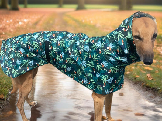 Summer rainwear ‘tropical toucan’ Greyhound deluxe style, spring showers, ultra lightweight