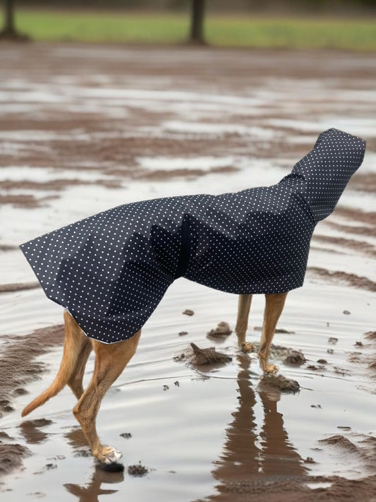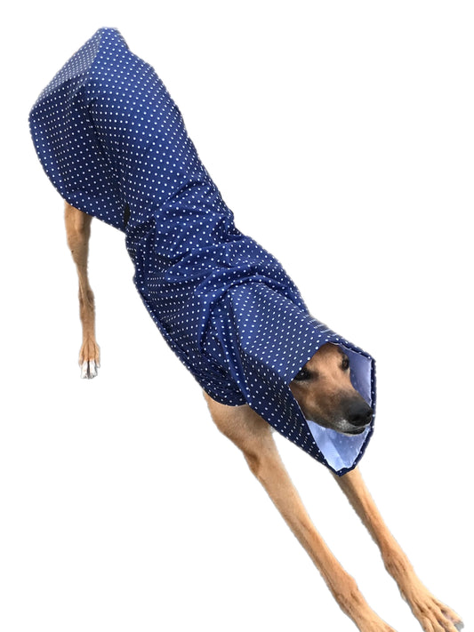 Navy blue dotty prints Greyhound coat deluxe style, summer rainwear, washable