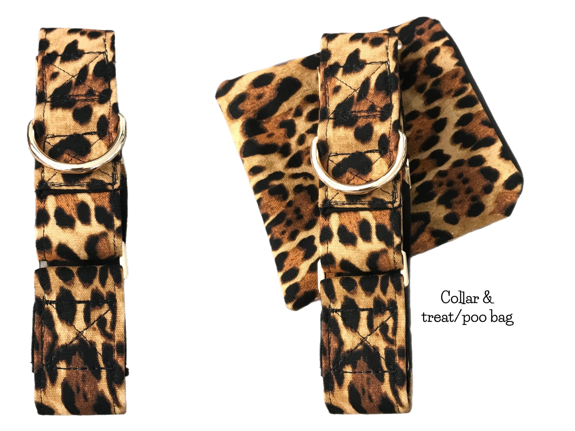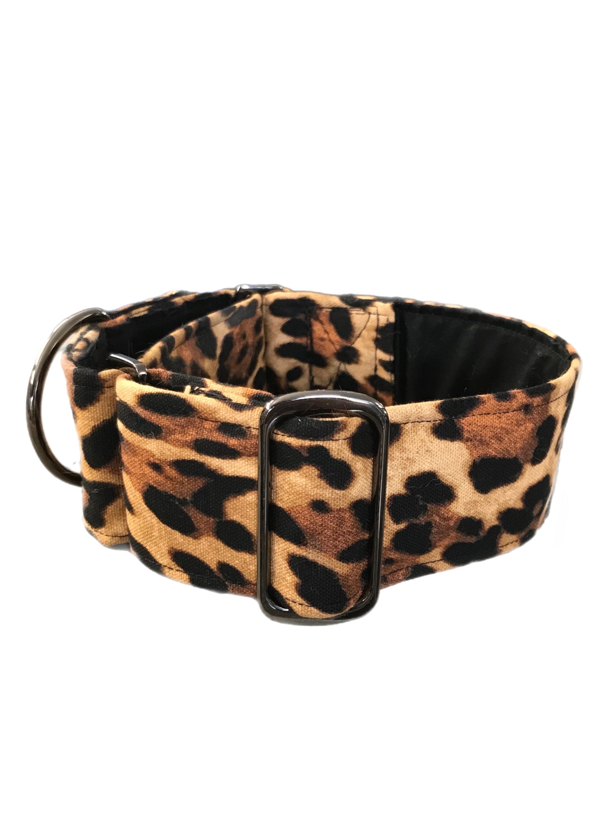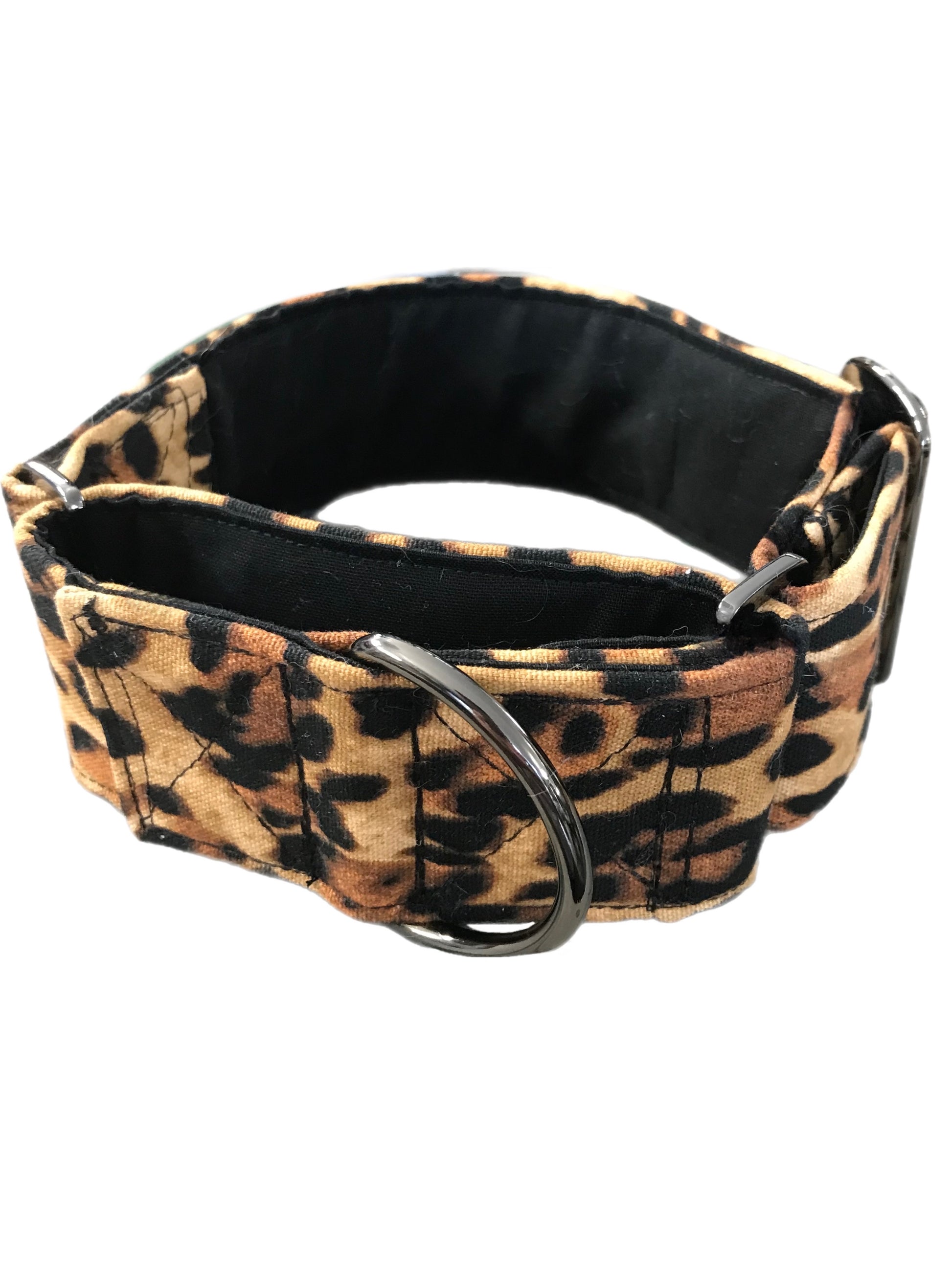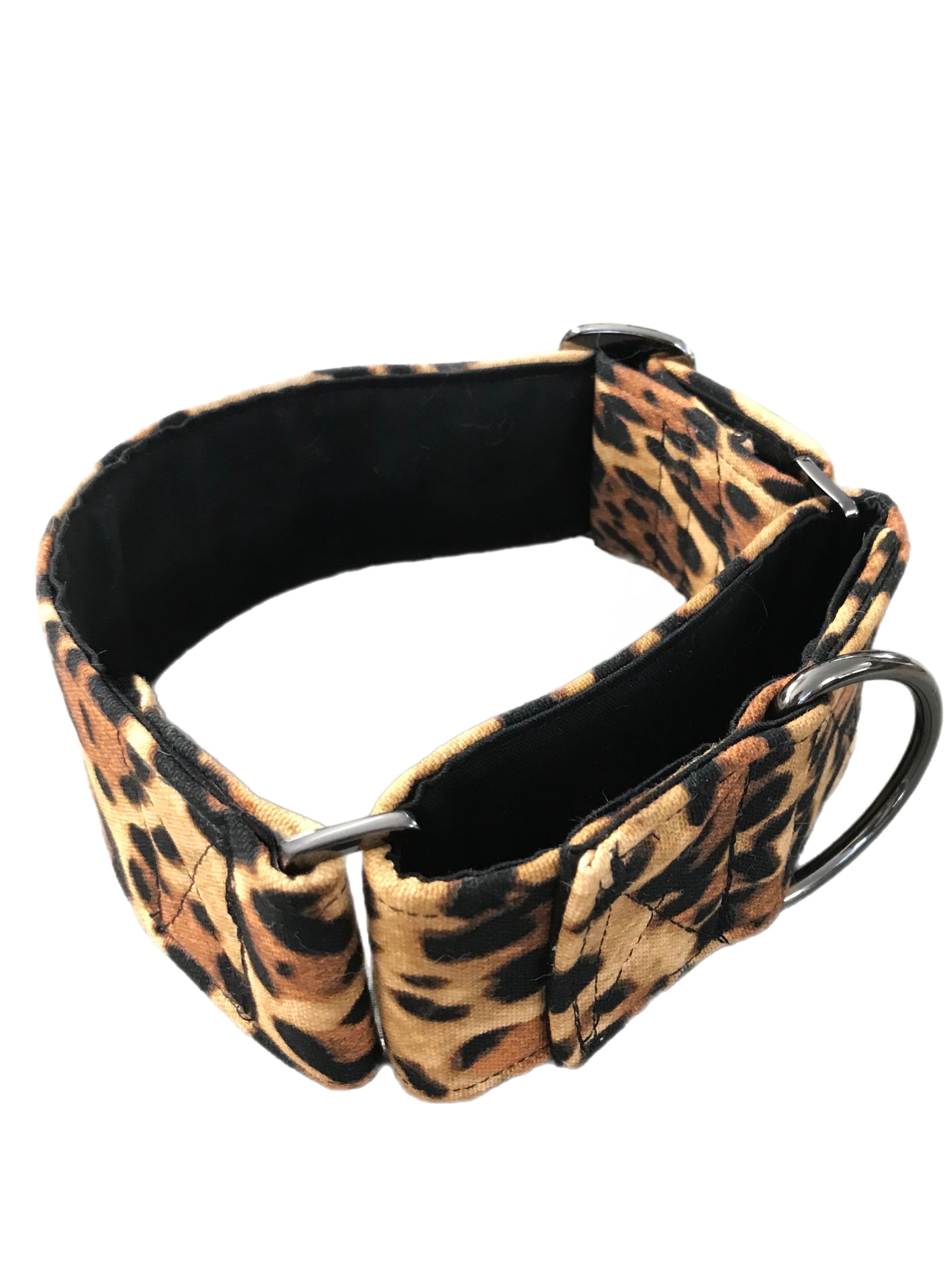 Leopard print Greyhound Martingale collar cotton covered 50mm width sturdy cotton
