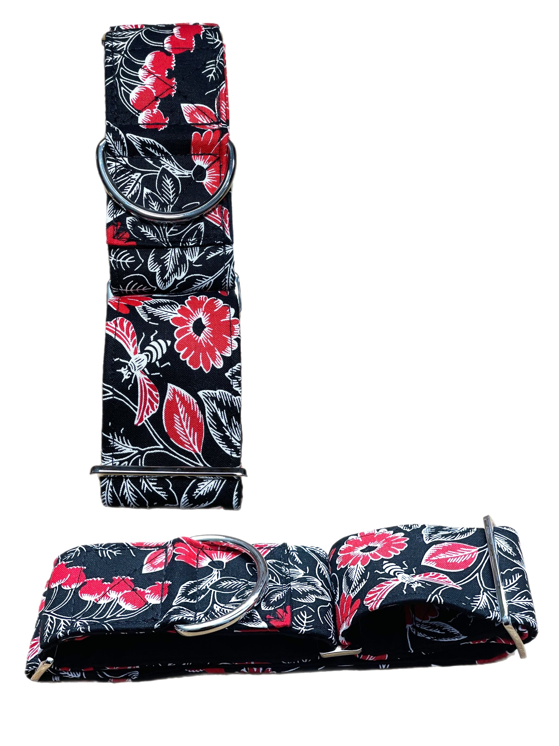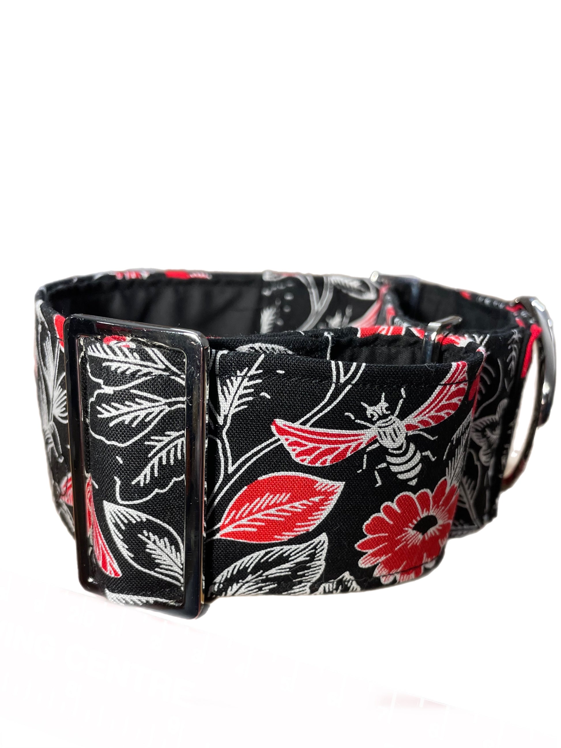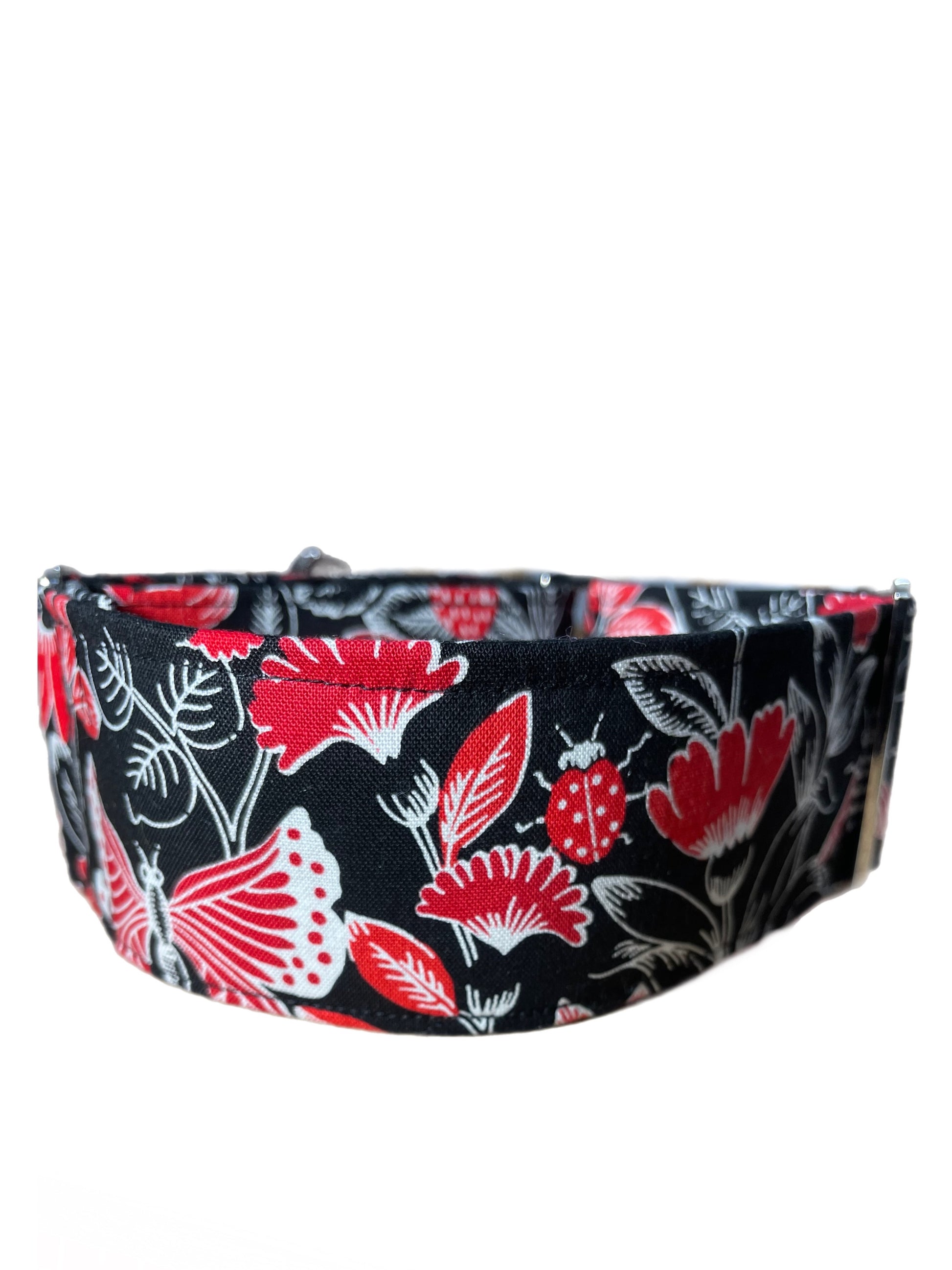 Butterflies in black red and white greyhound Martingale collar cotton covered 50mm width