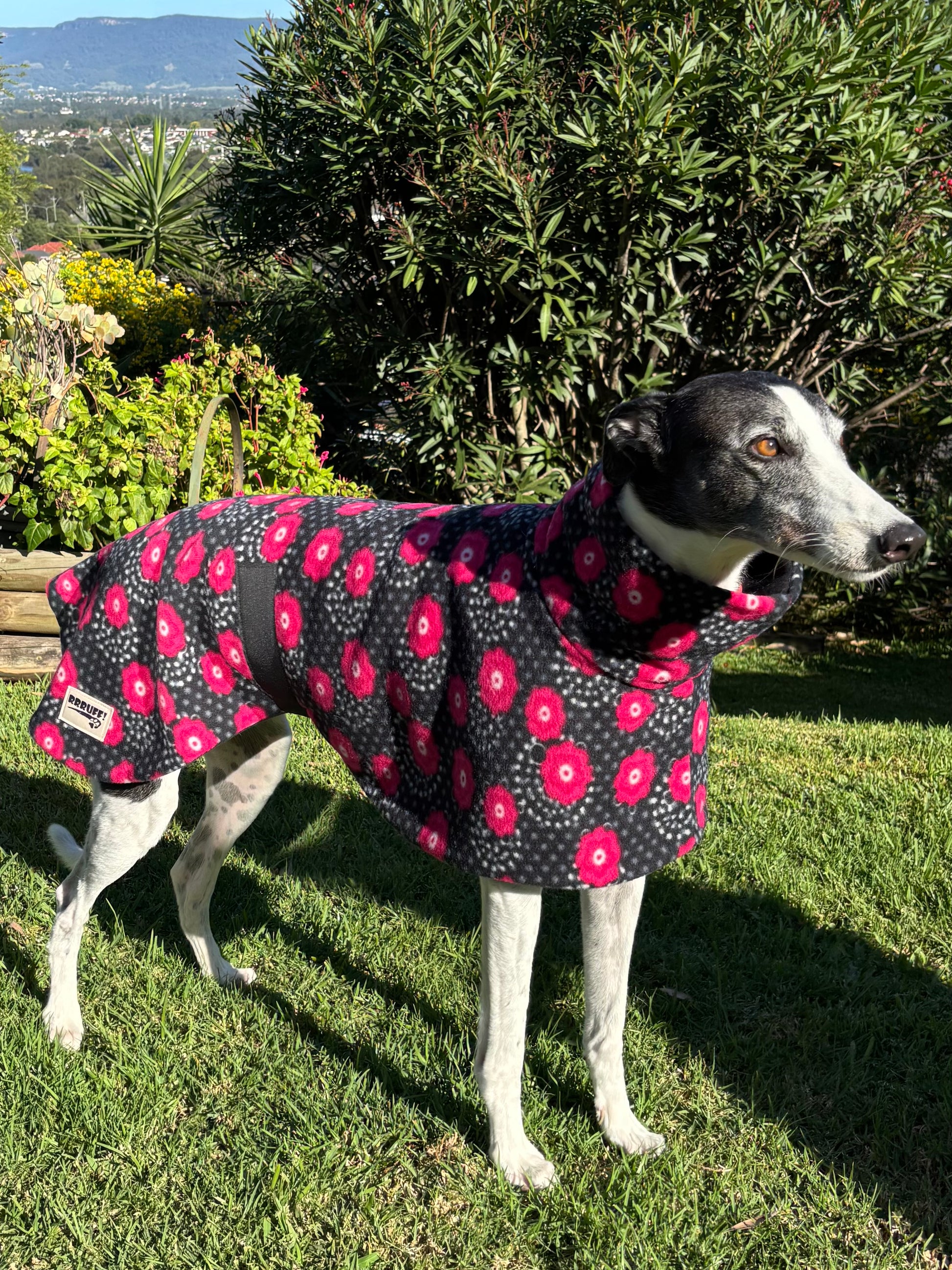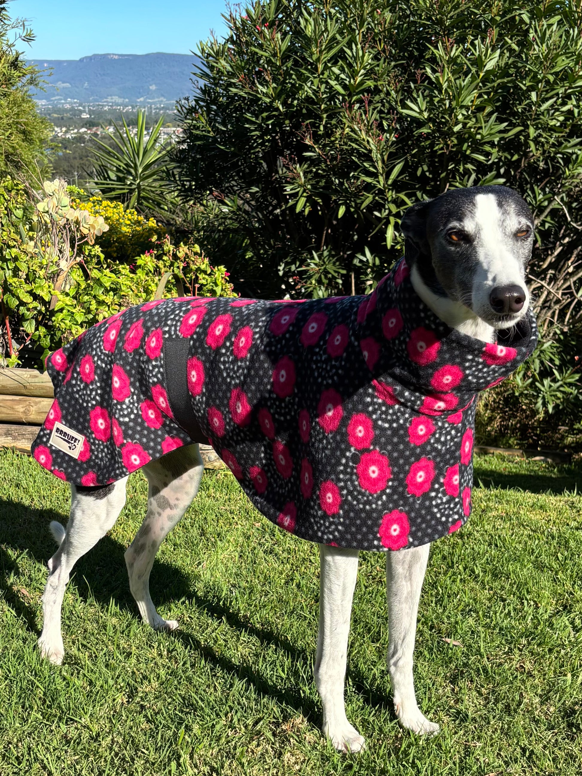 *Every coat comes with a fleece sleeve to place over the Velcro belly band if required for a softer feel against your hound’s tummy