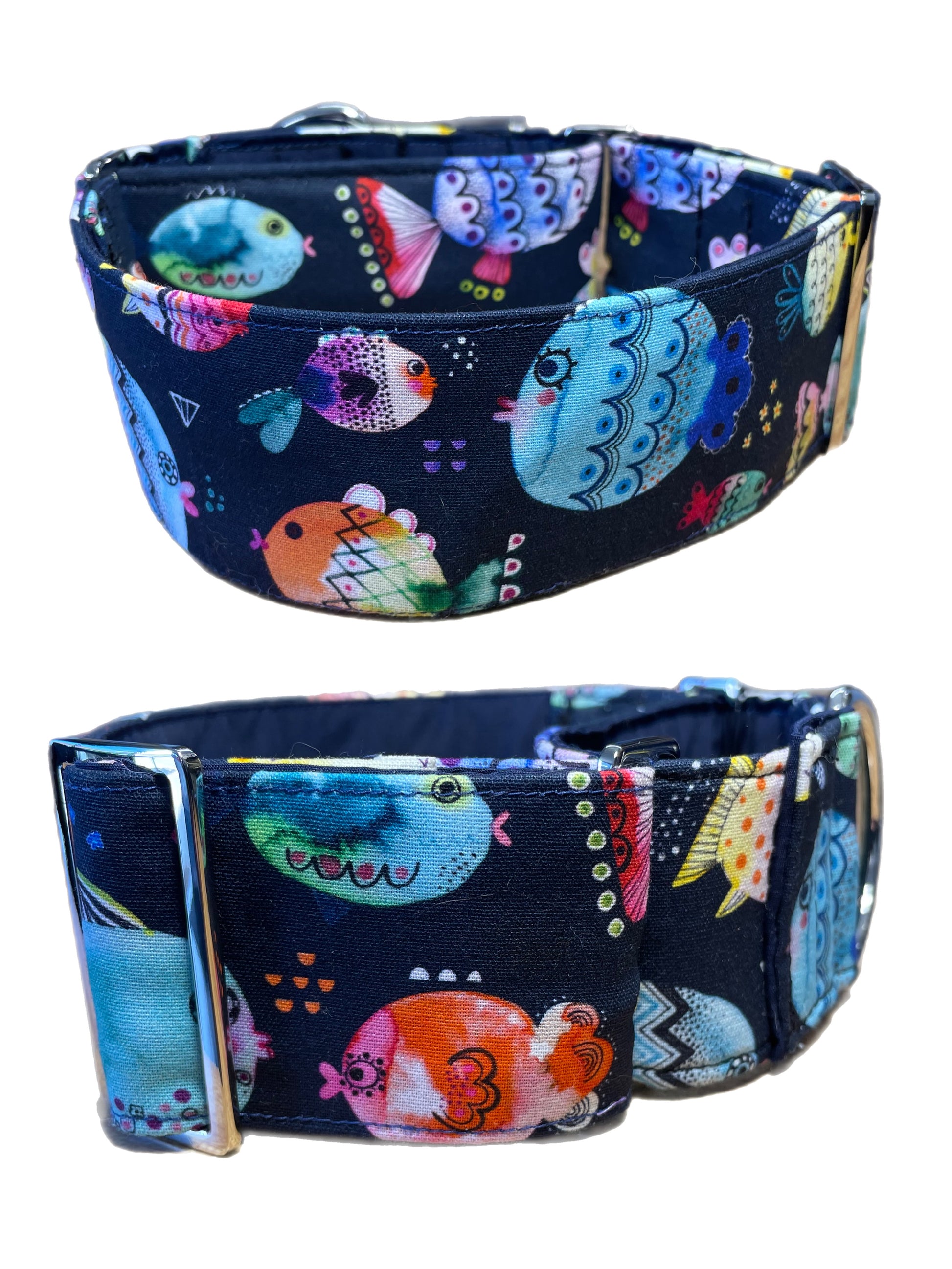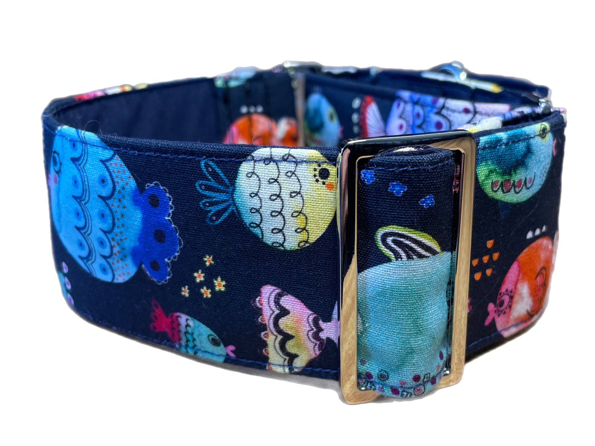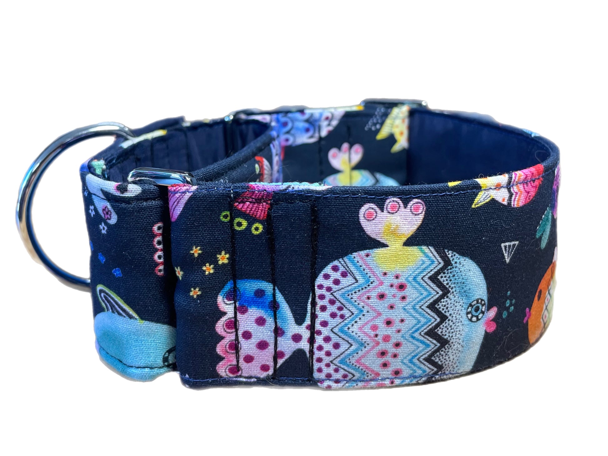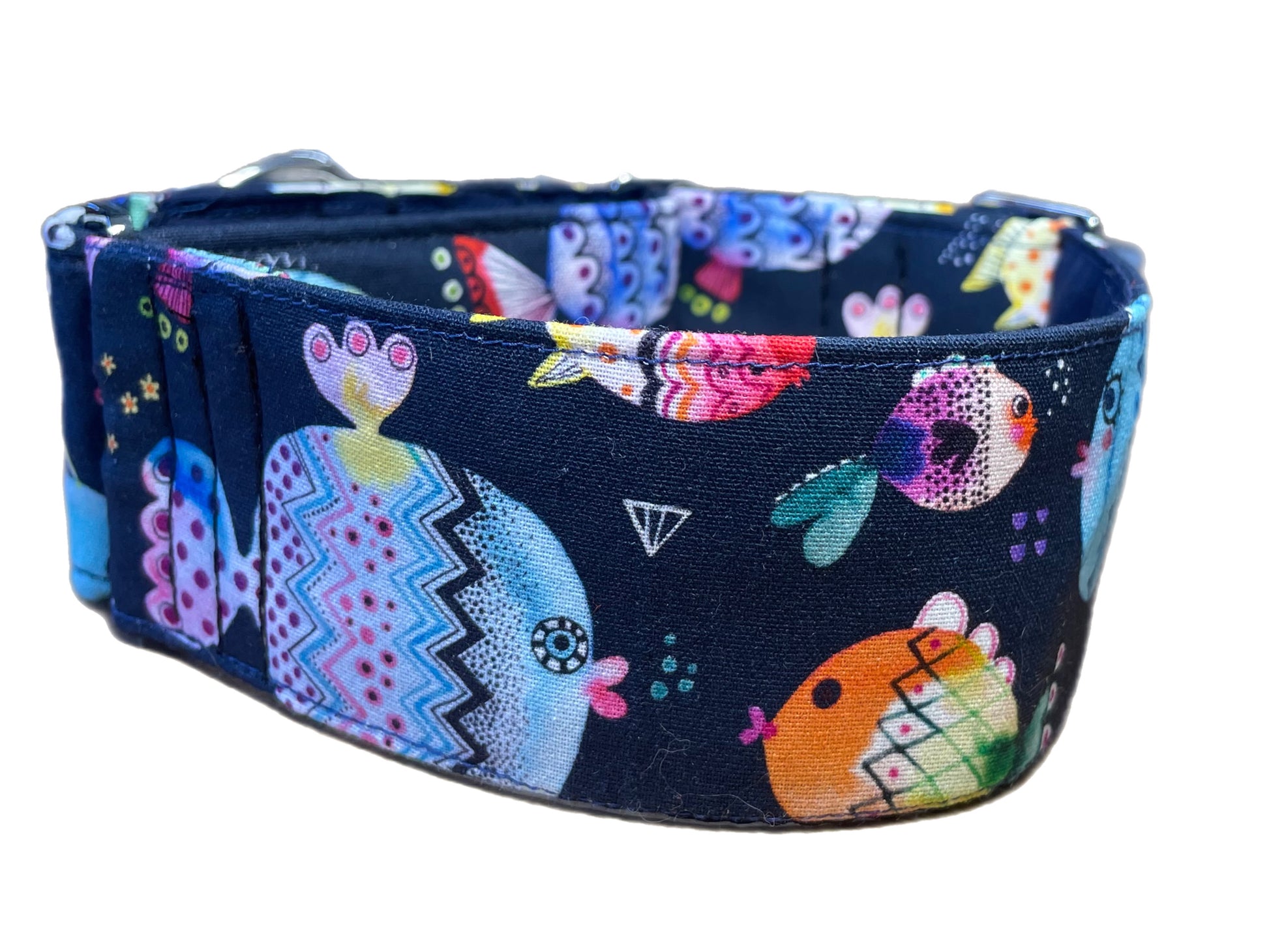 Cute puffer fish greyhound Martingale collar cotton covered 50mm width super soft