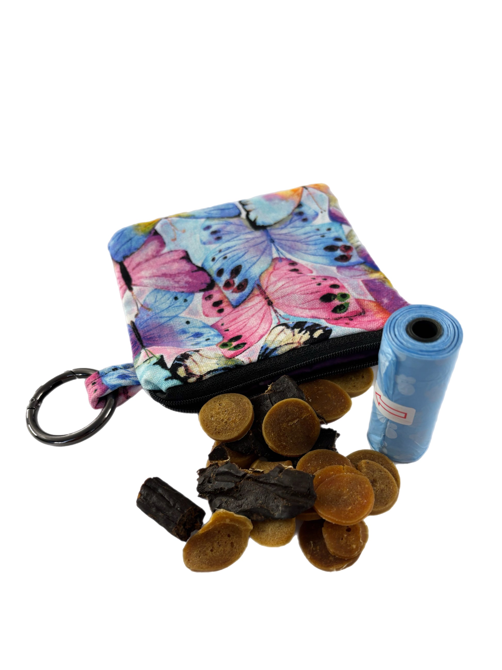 *matching go bag comes with removable metal round spring clip, this can be attached to the dog’s harness, the leash, your handbag or even a belt loop.