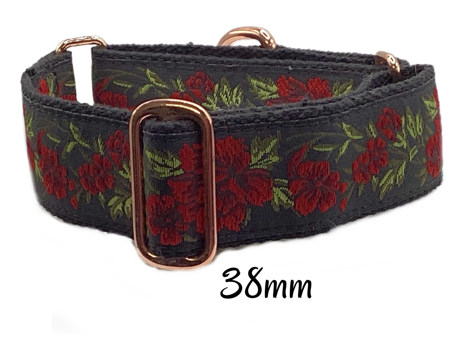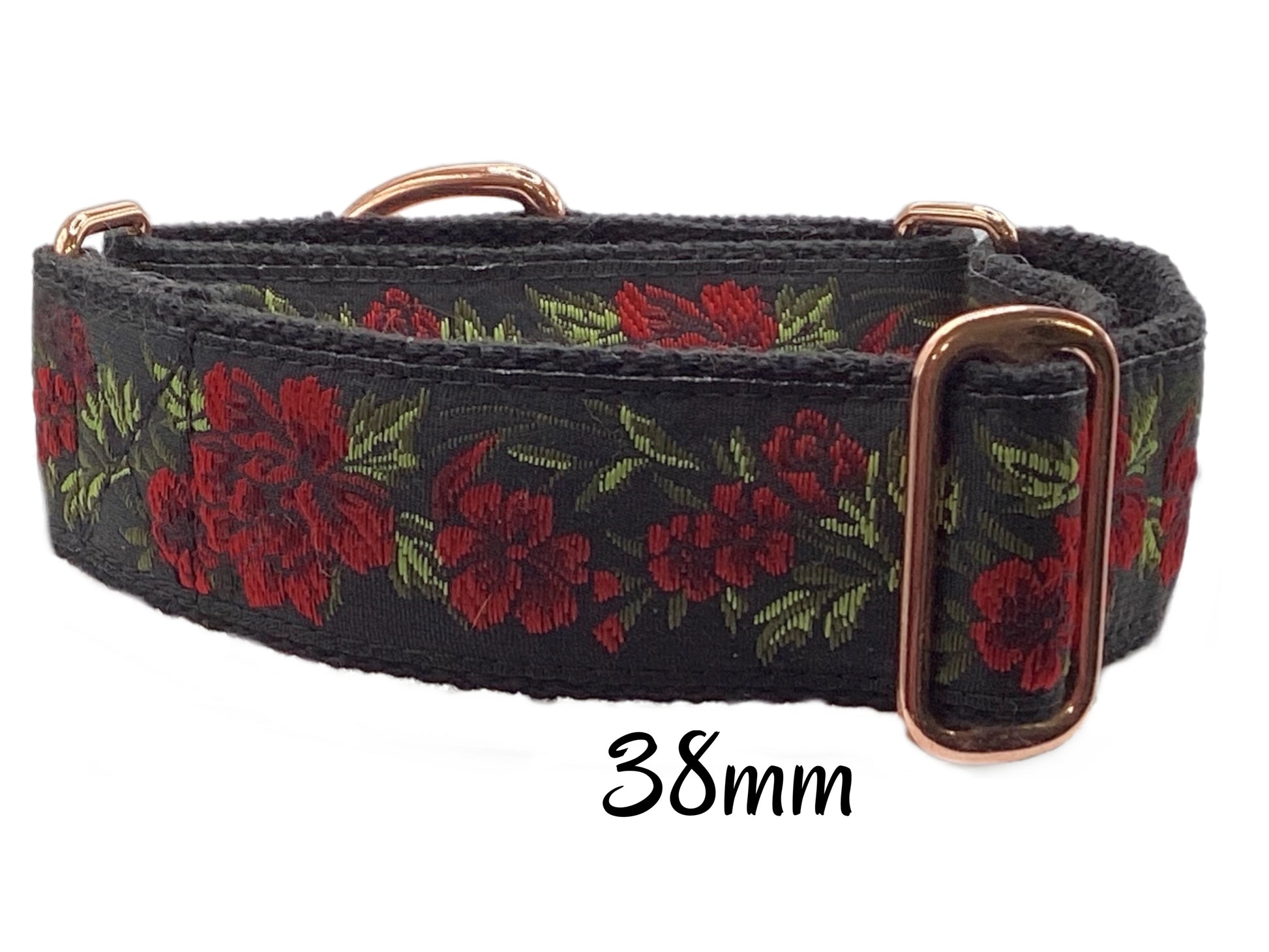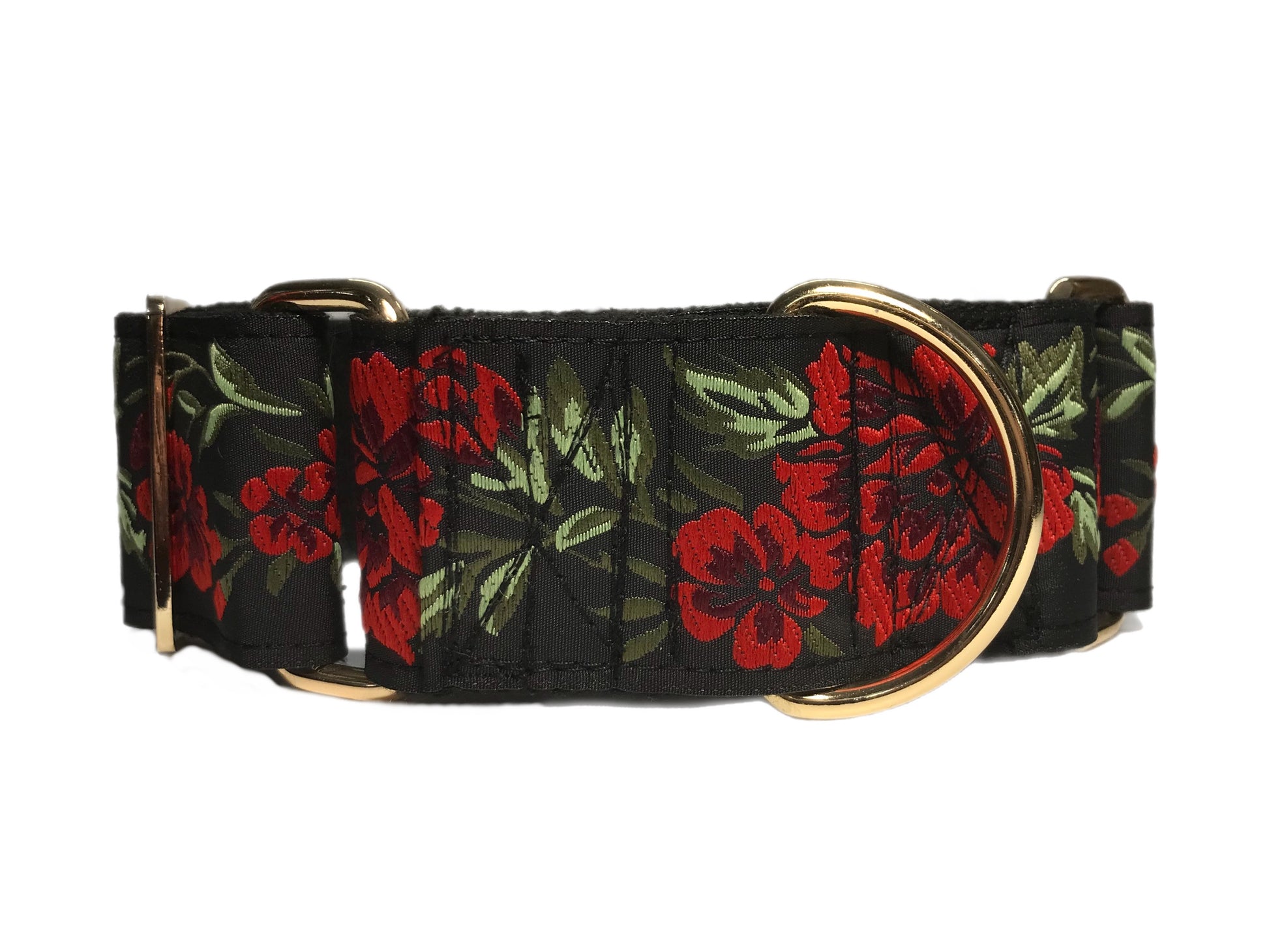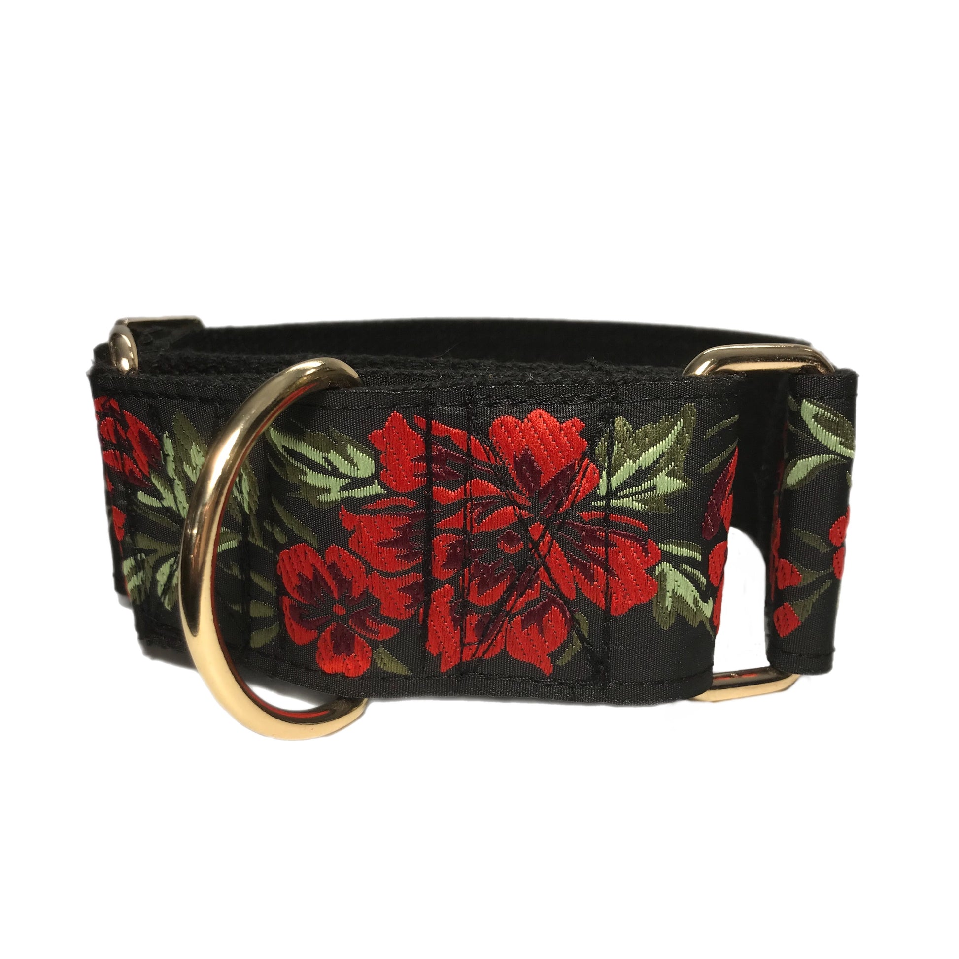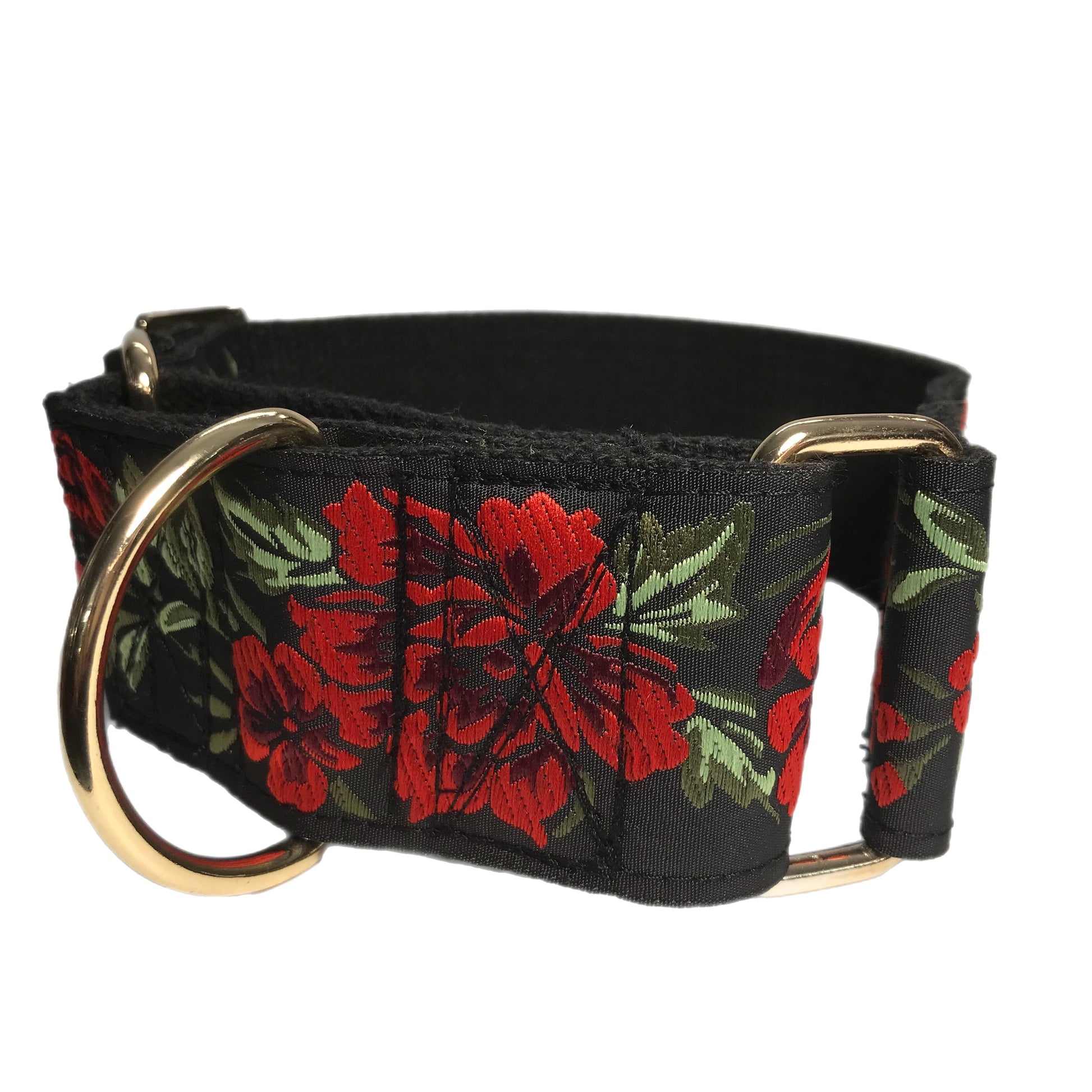 Large martingale collar for the bigger dogs! Beautiful red floral on black