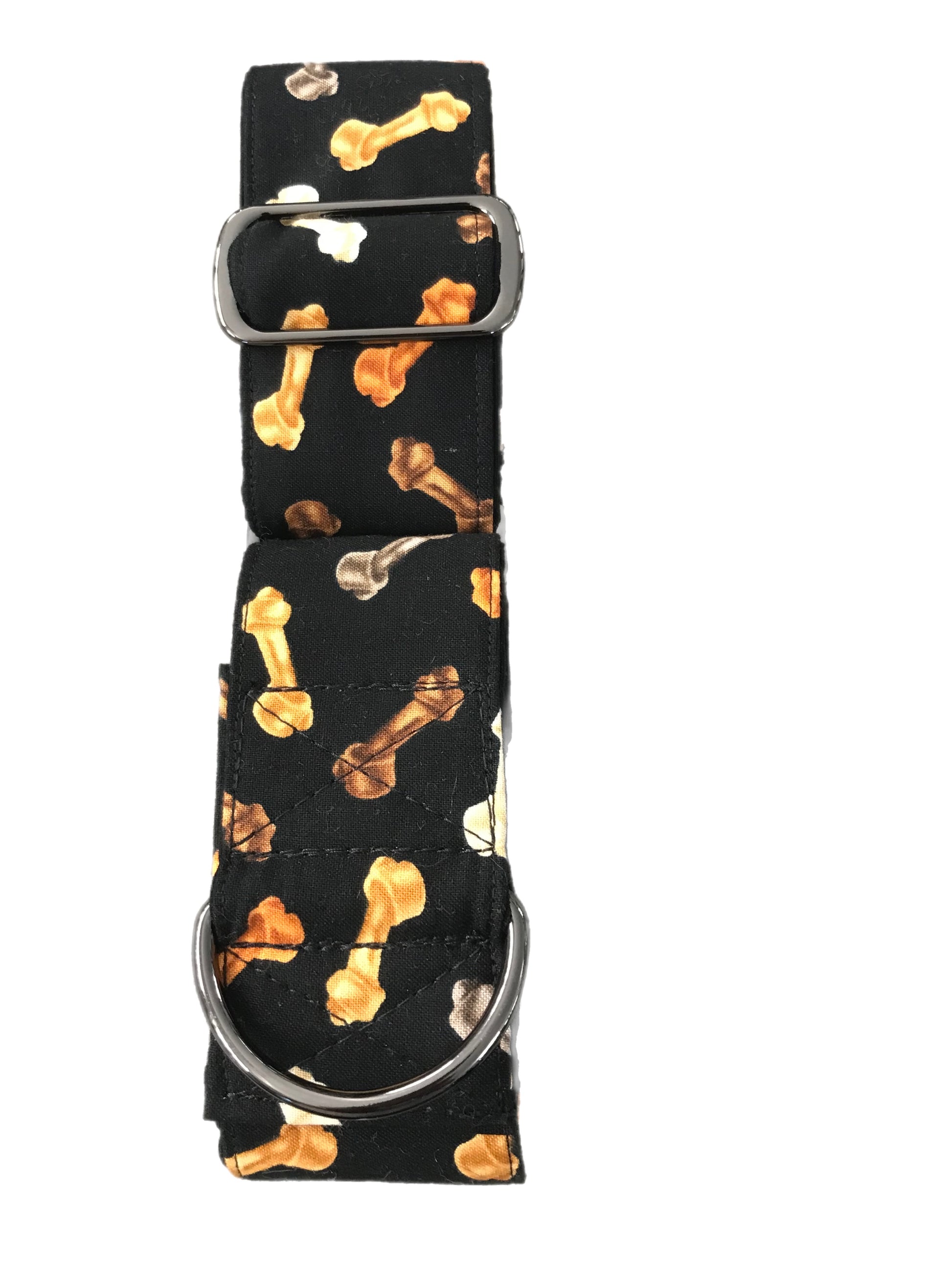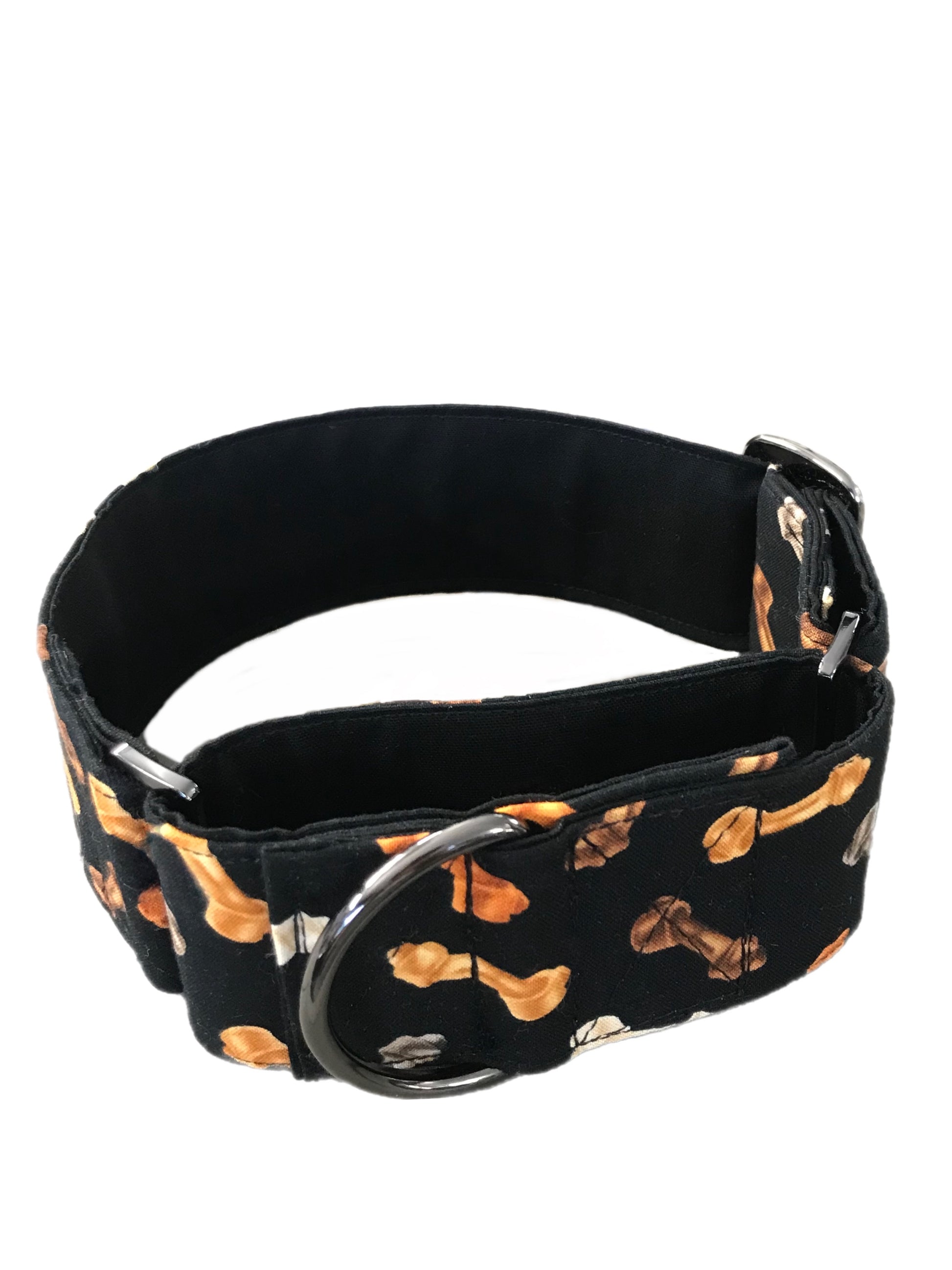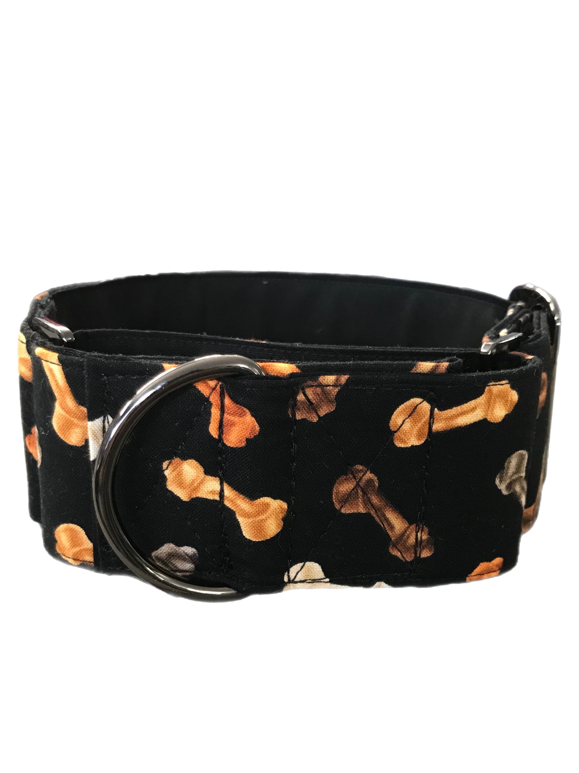 Made from soft cotton fabric with black inner webbing, this martingale collar is triple stitched to assure longevity, and strength
