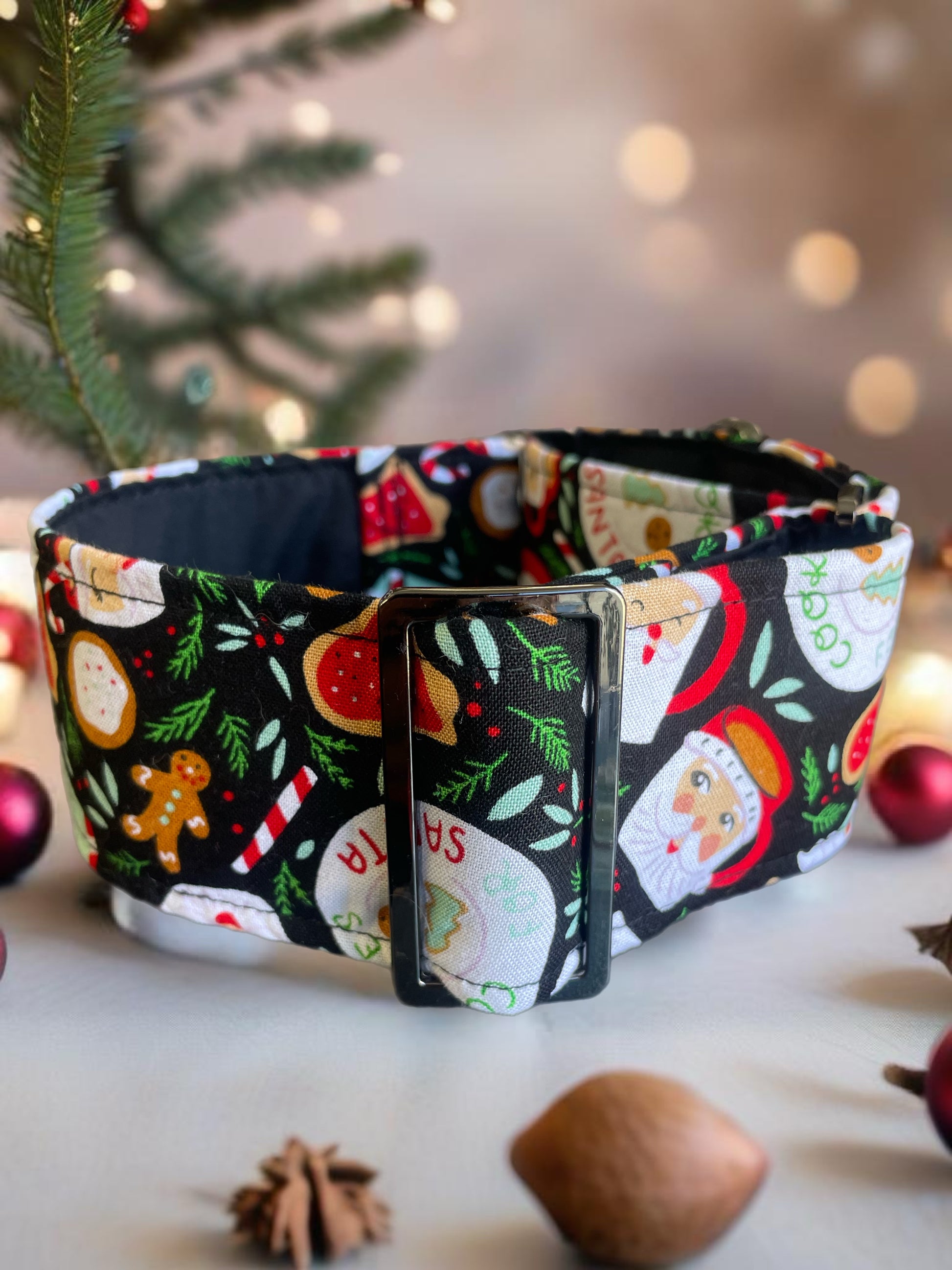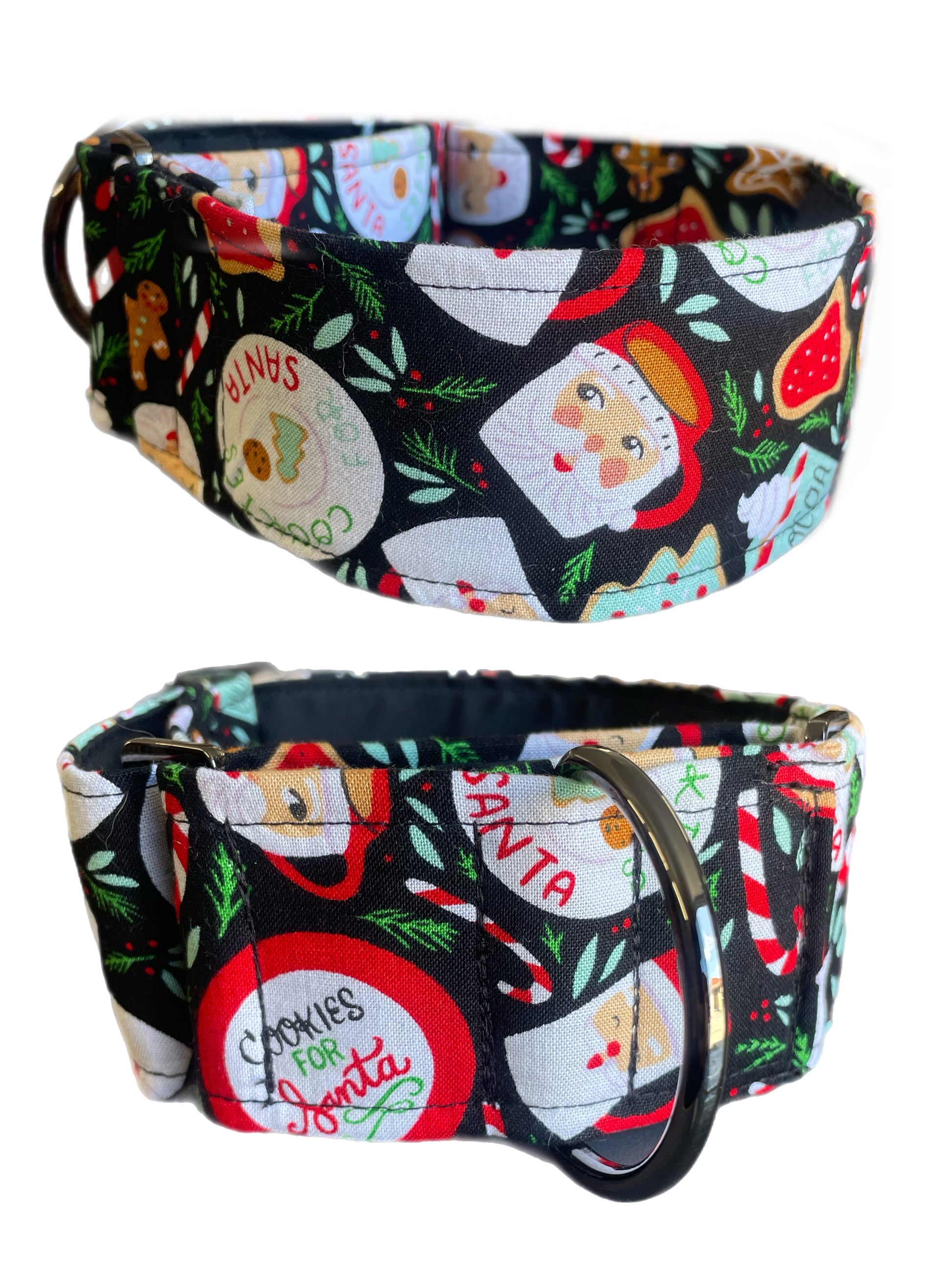 Christmas Santa & cookies Cotton covered greyhound Martingale collar comfortable super soft