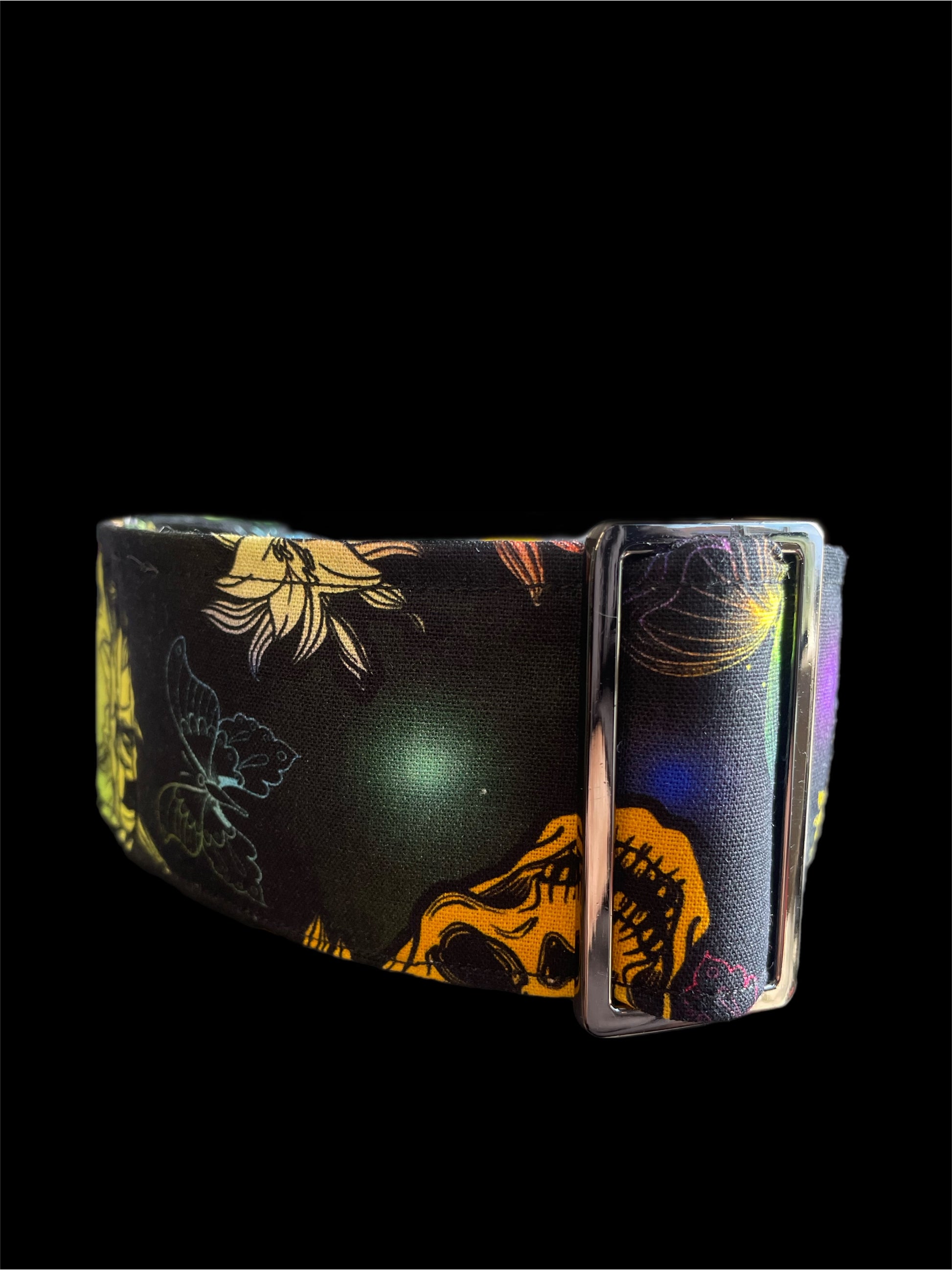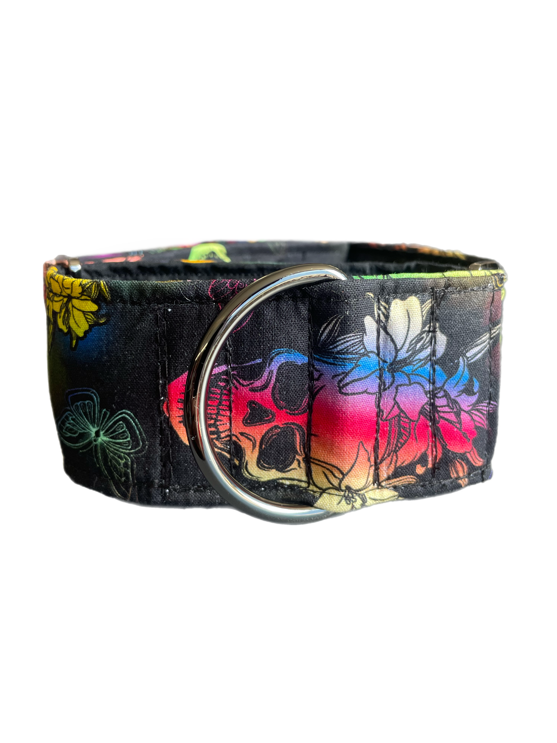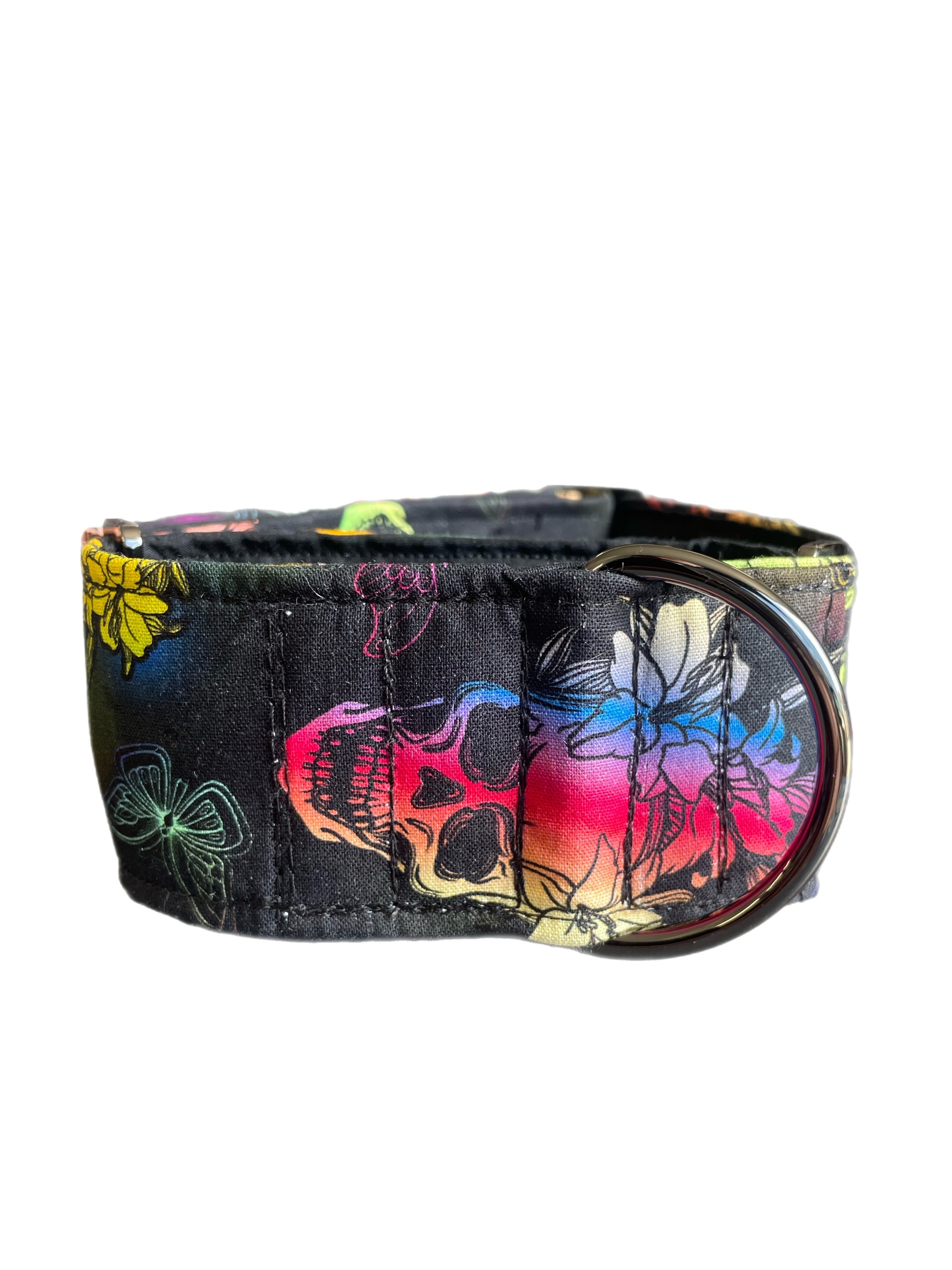 Colored Sugar skulls Martingale collar greyhound 5cms super soft cotton fabric