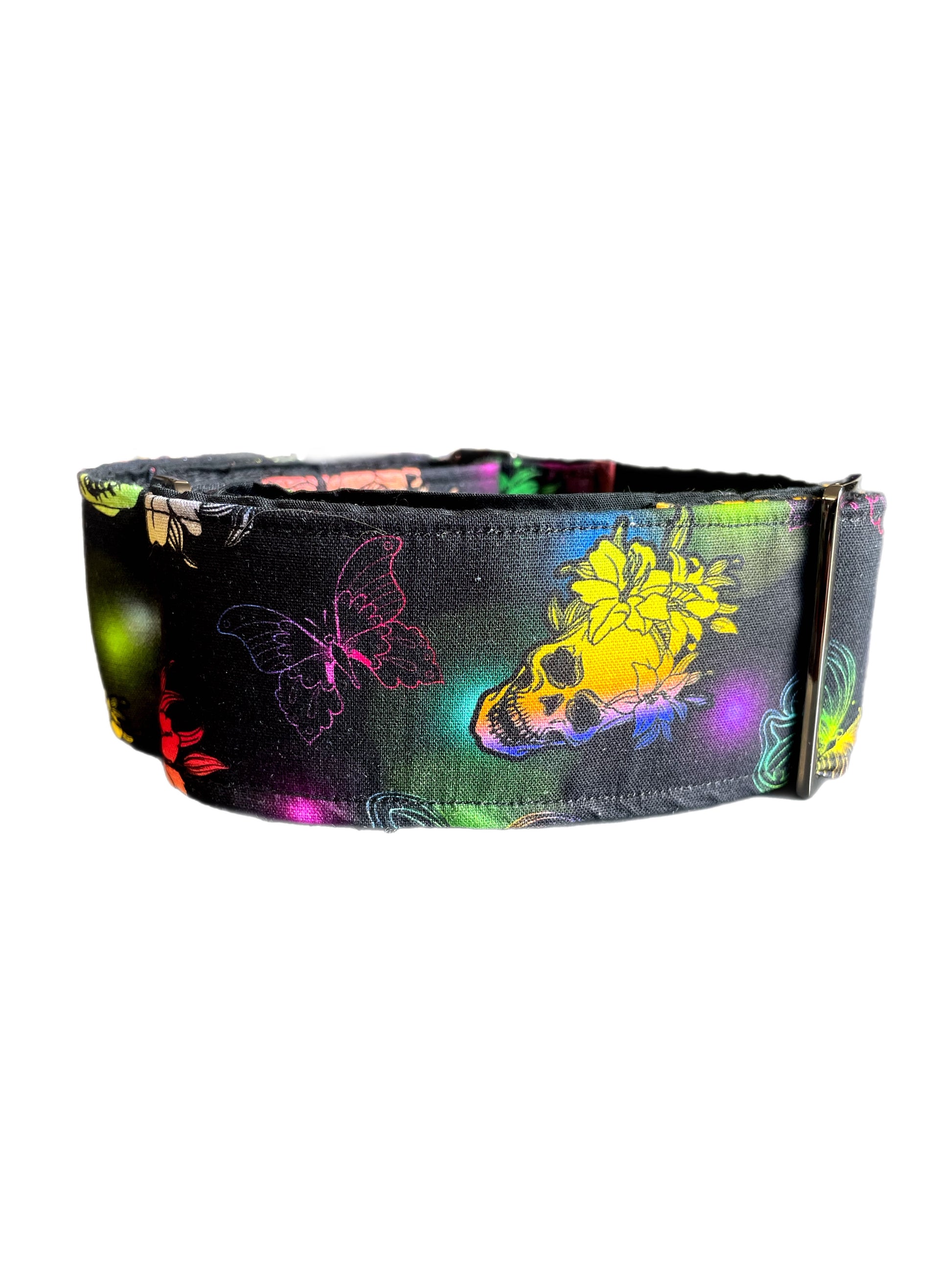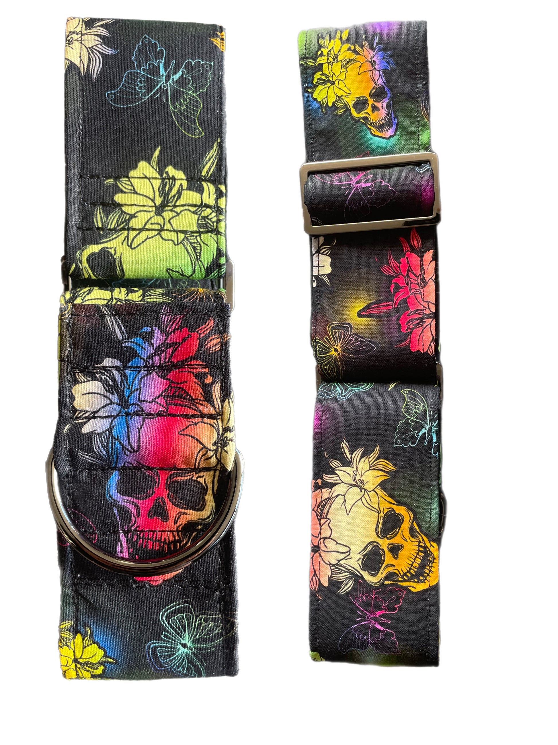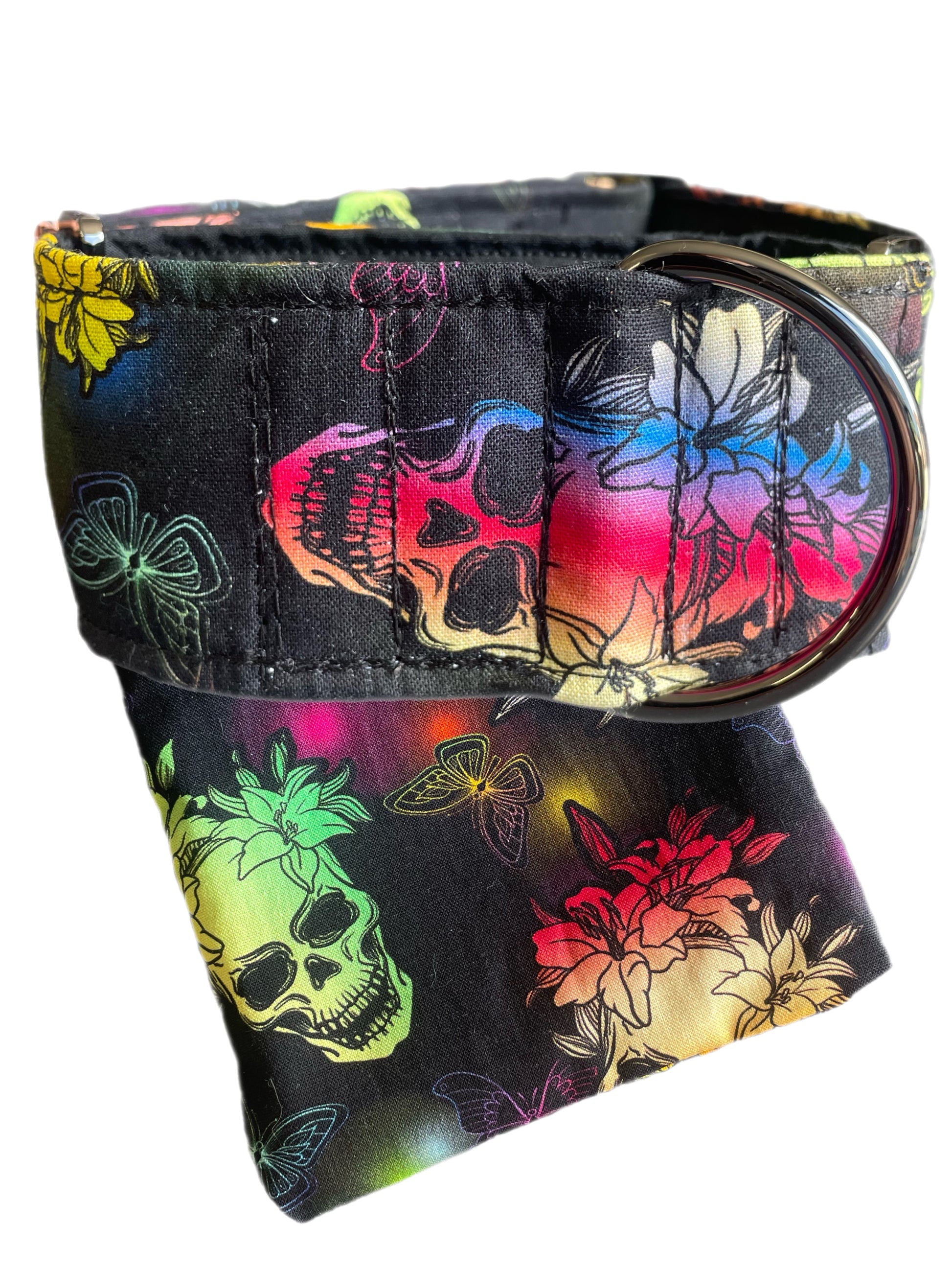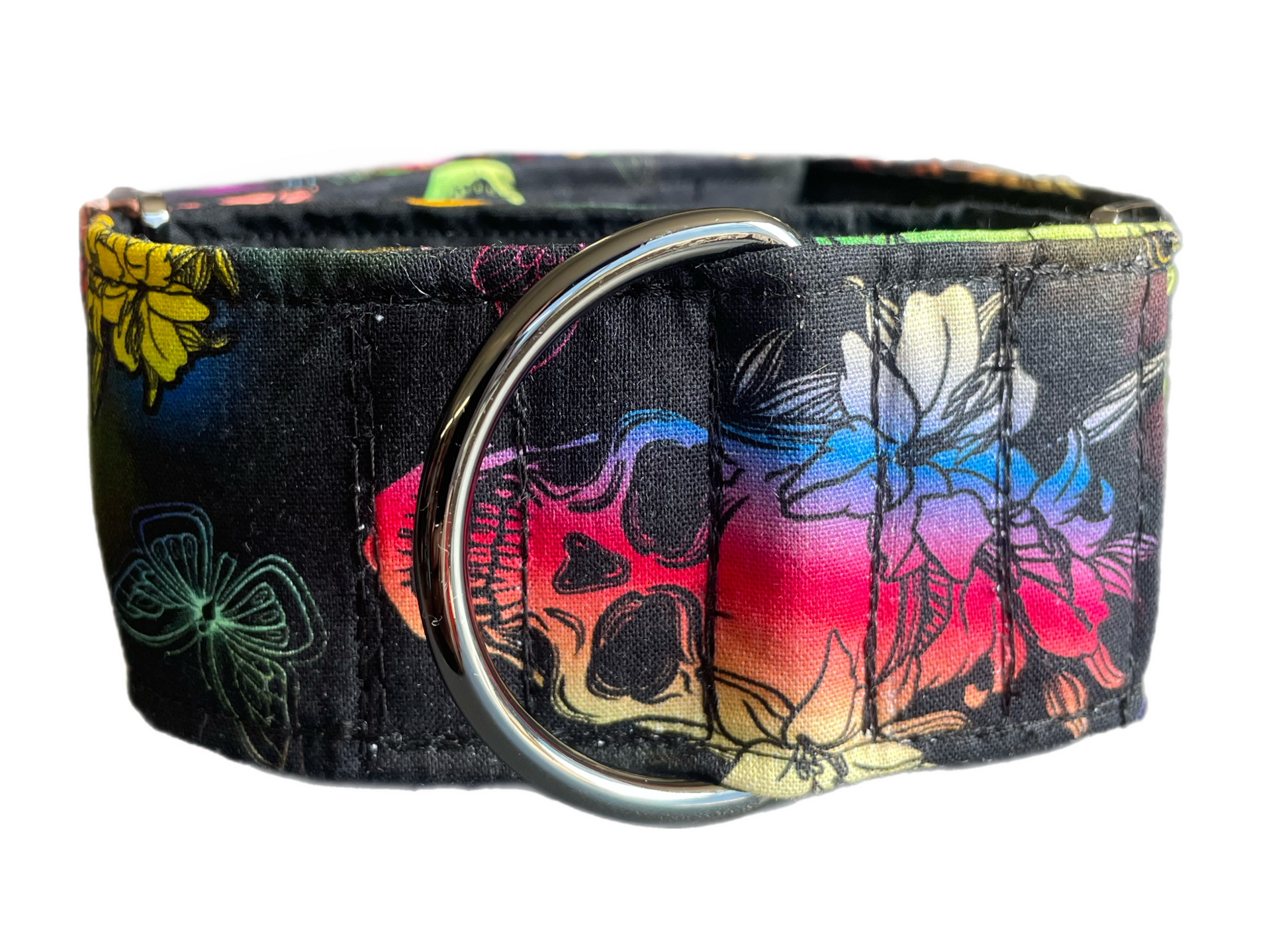 Colored Sugar skulls Martingale collar greyhound 5cms super soft cotton fabric
