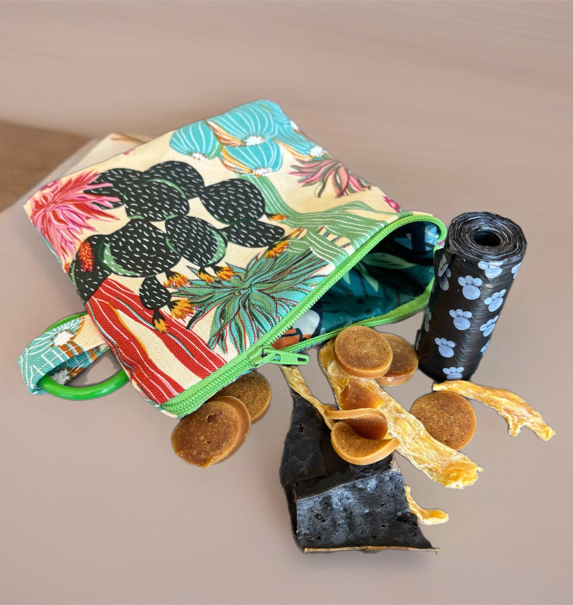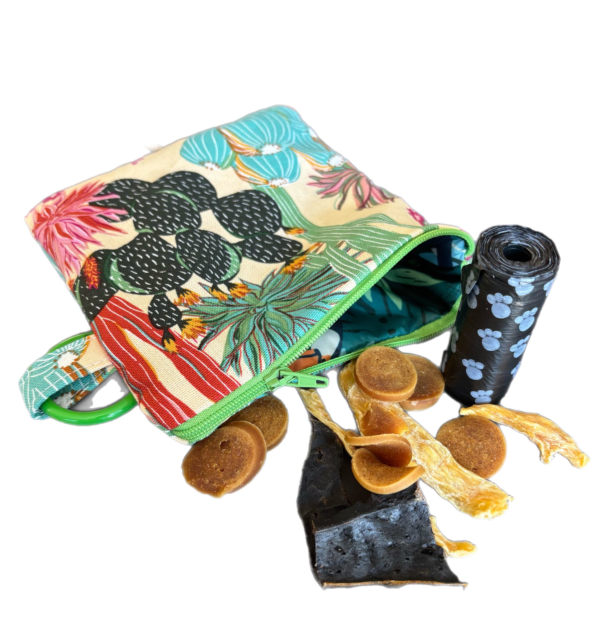 *matching go bag comes with removable metal round spring clip, this can be attached to the dog’s harness, the leash, your handbag or even a belt loop.