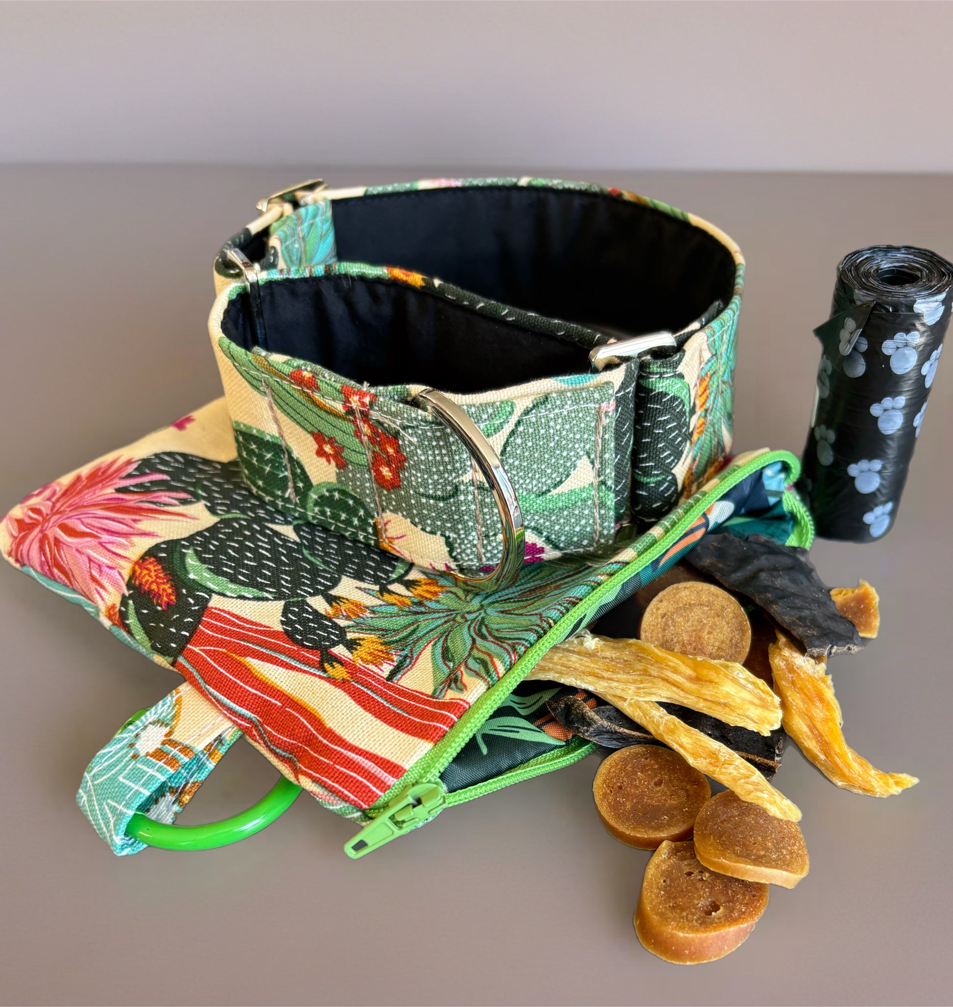 Martingale collars are not only beautiful but they are the perfect training collar that gently gives you more control while out walking. Being wide at 50mm, they also help to avoid the choking or coughing effect if your hound pulls for any reason (perhaps a cat has come into sight 🐈⬛🙀)
