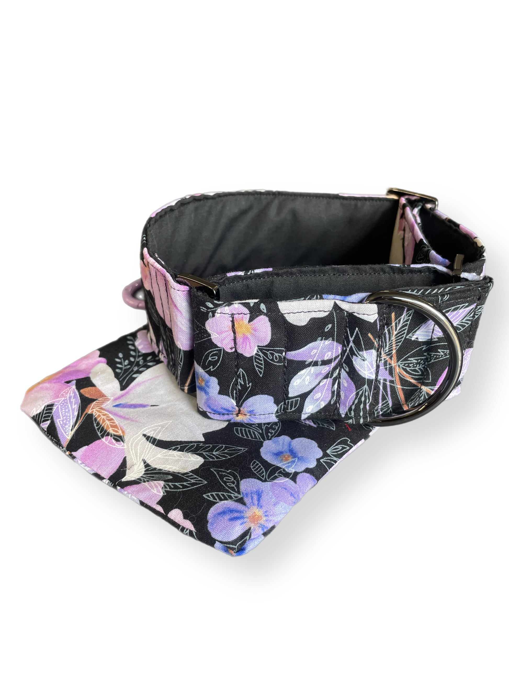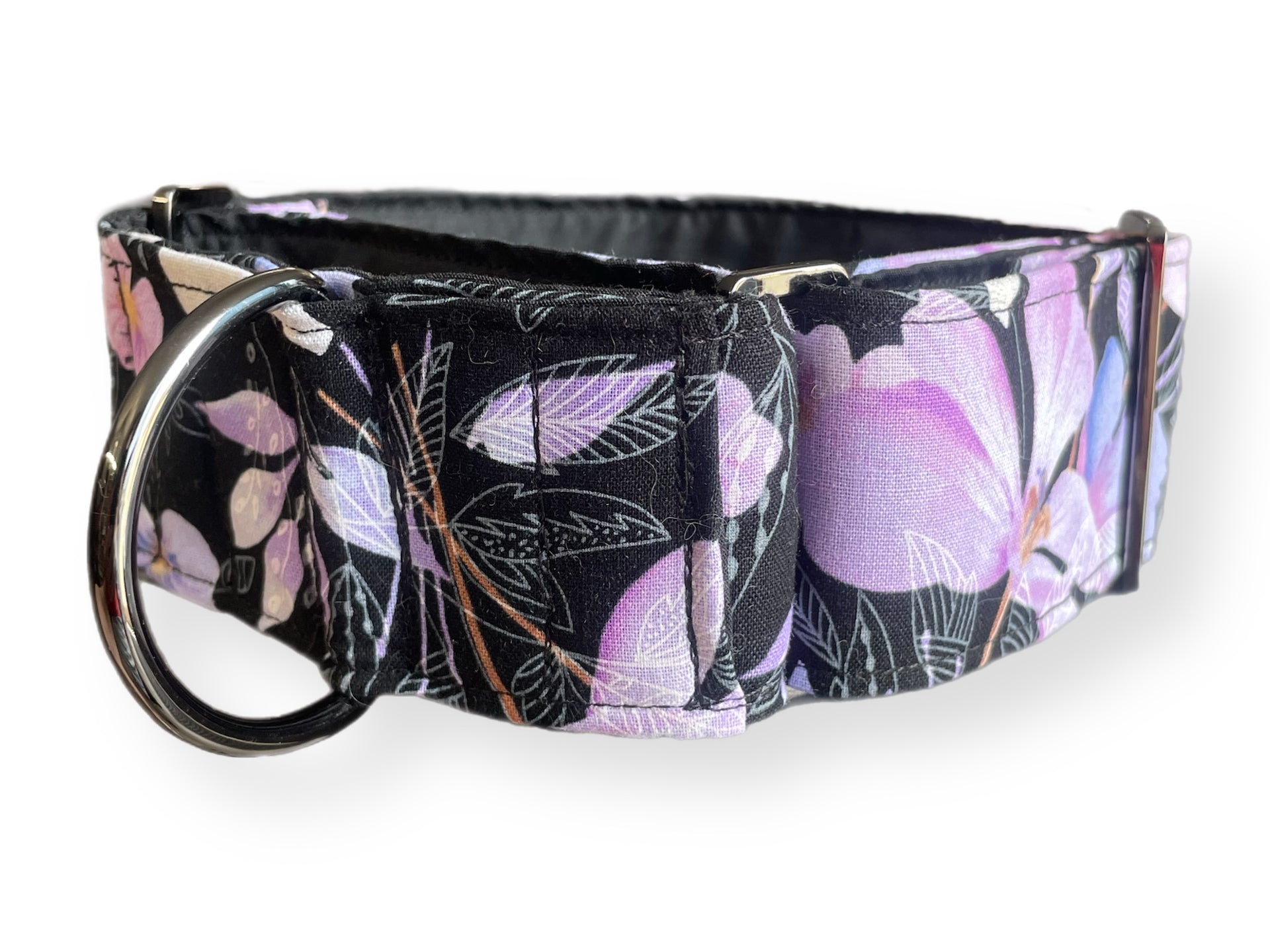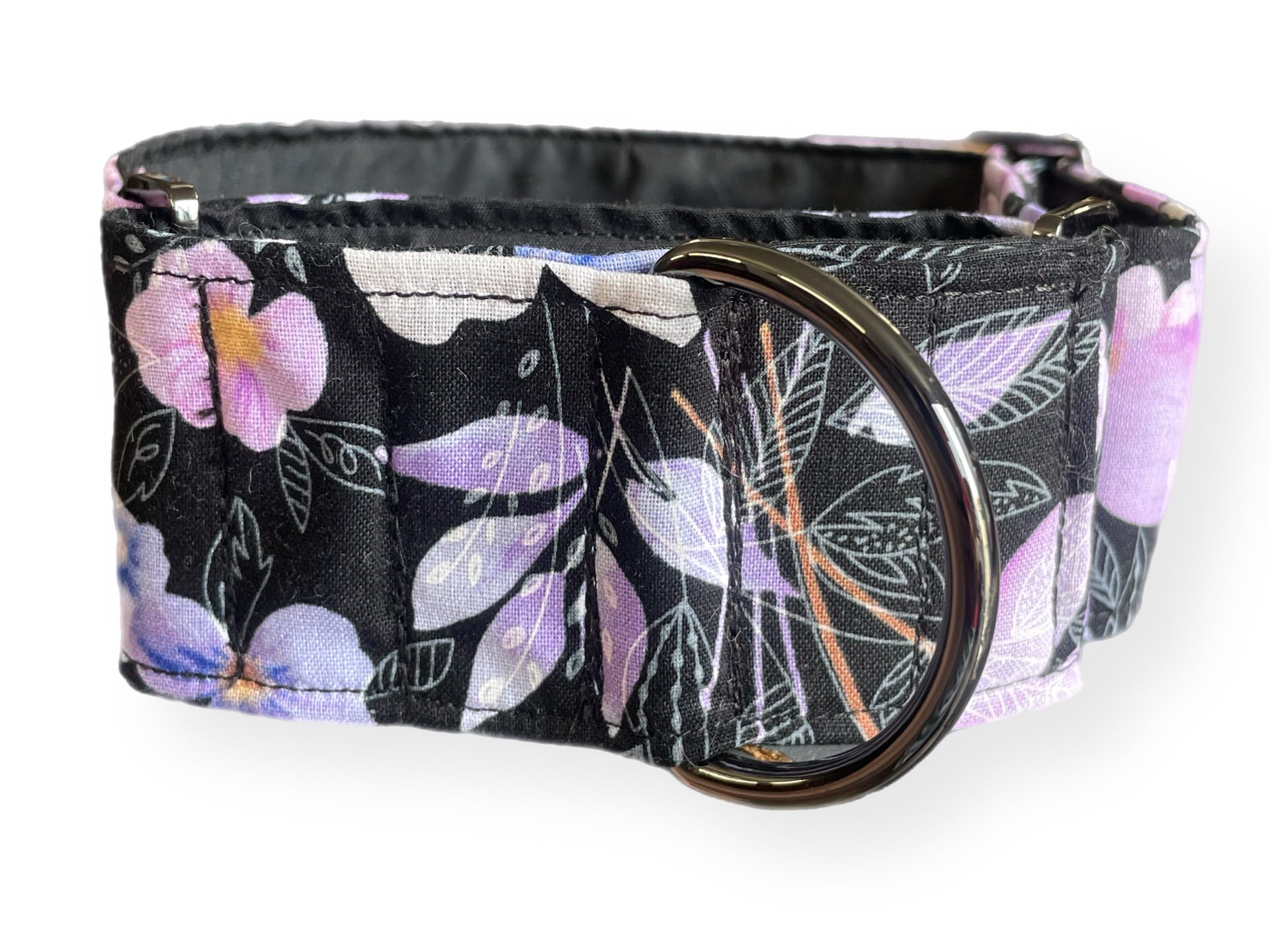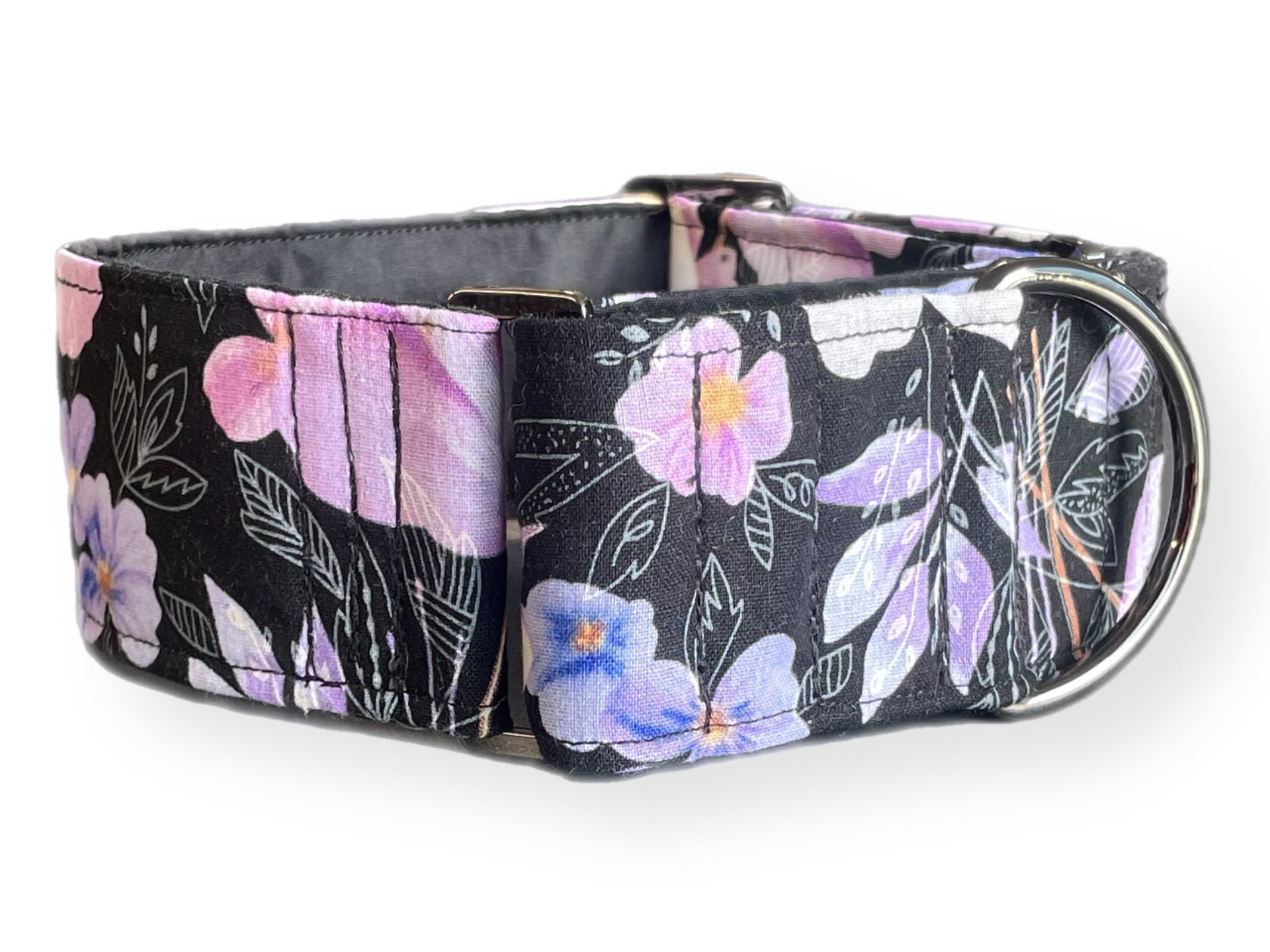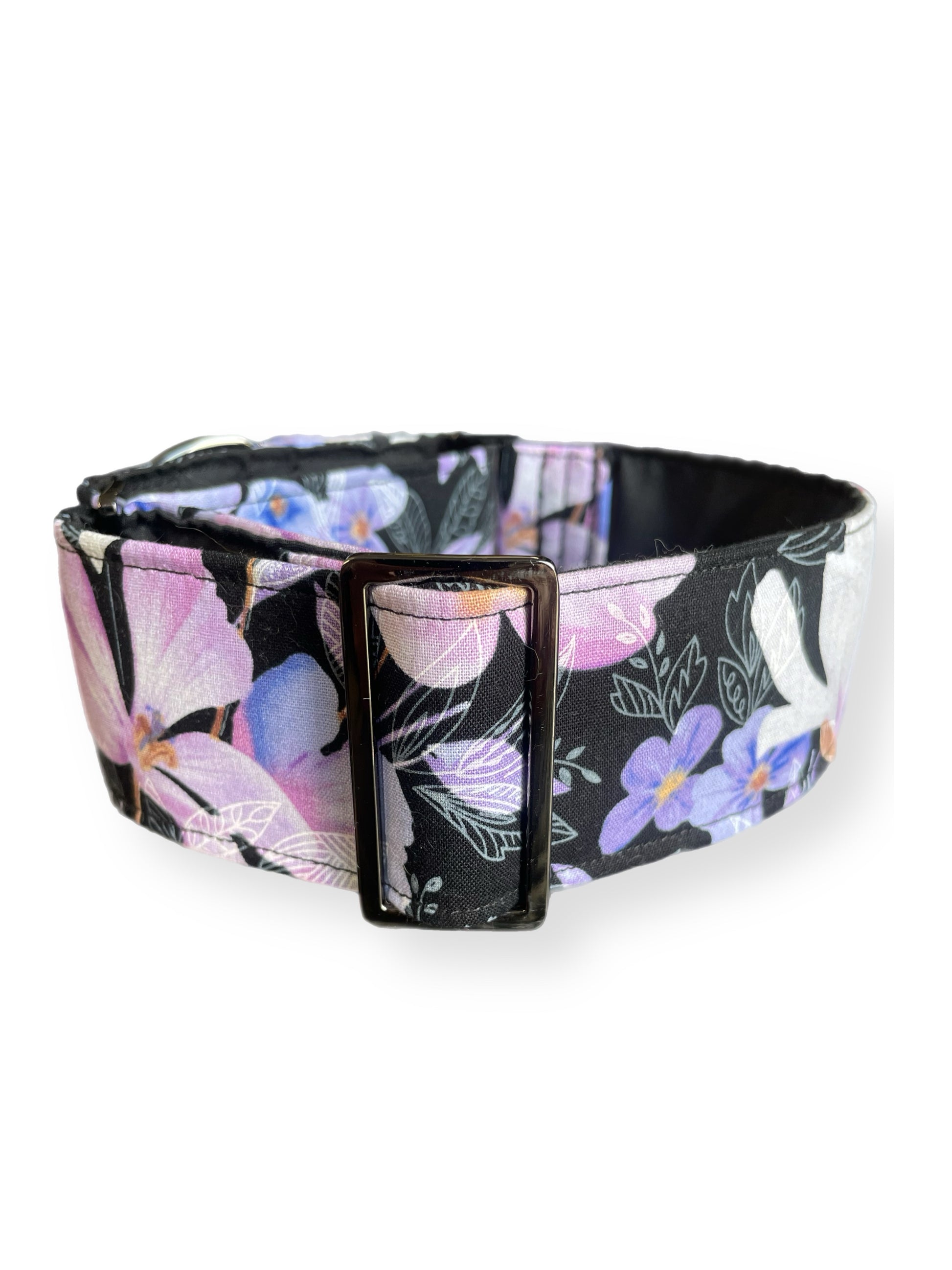 Soft mauve & pink floral on black Martingale collar greyhound 5cms super soft cotton fabric