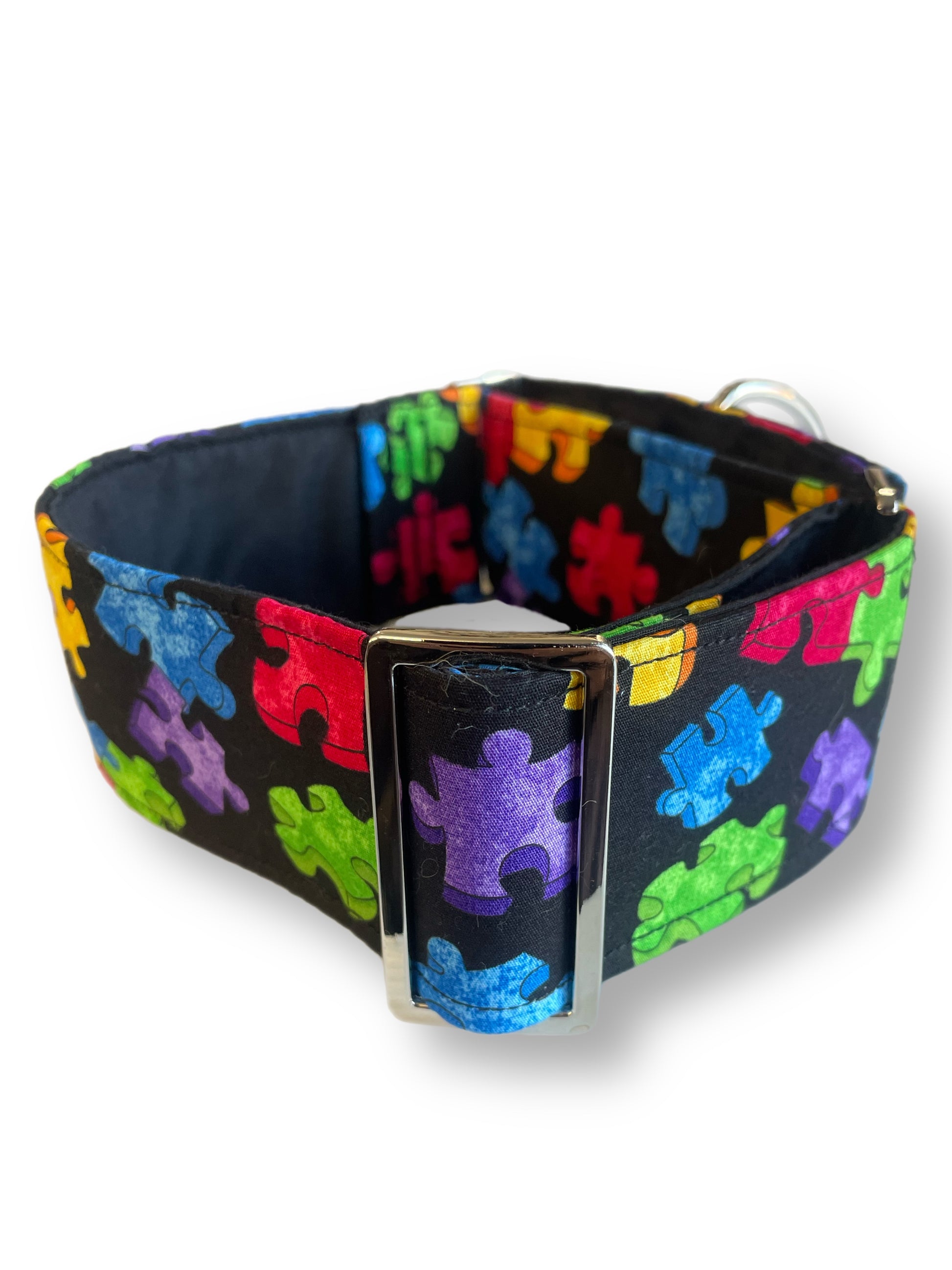 Puzzle pieces design cotton covered greyhound Martingale collar 50mm width