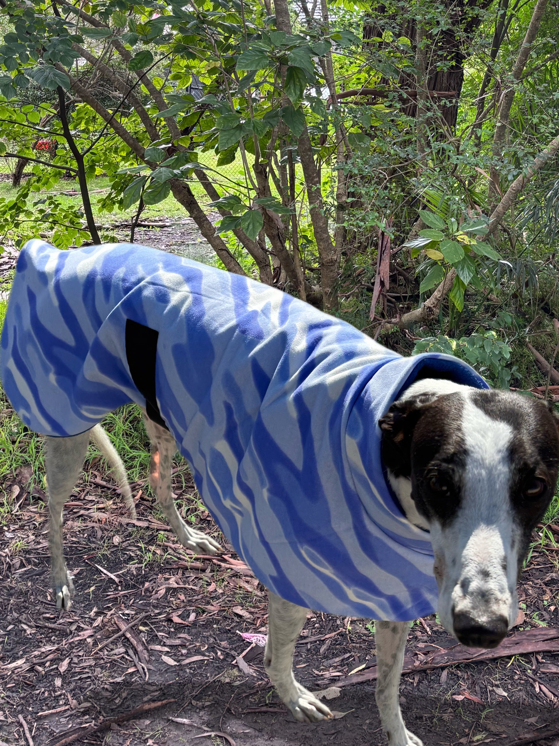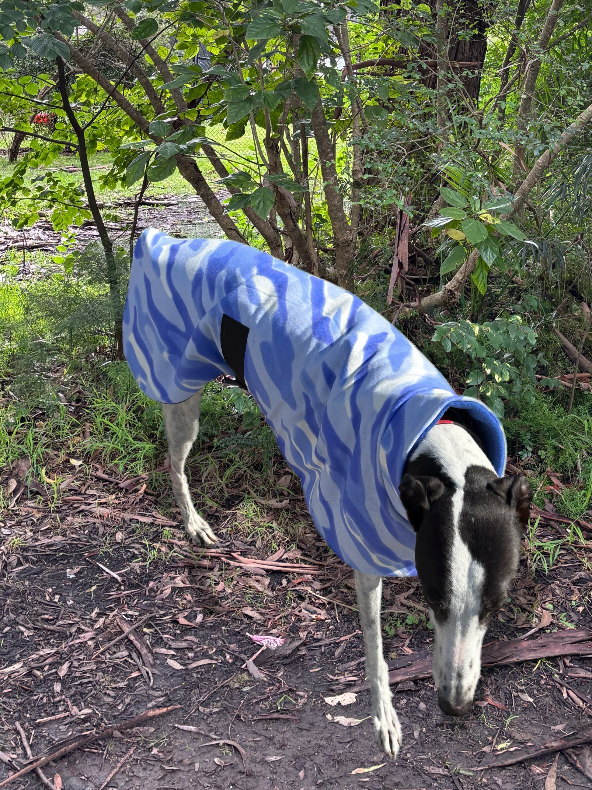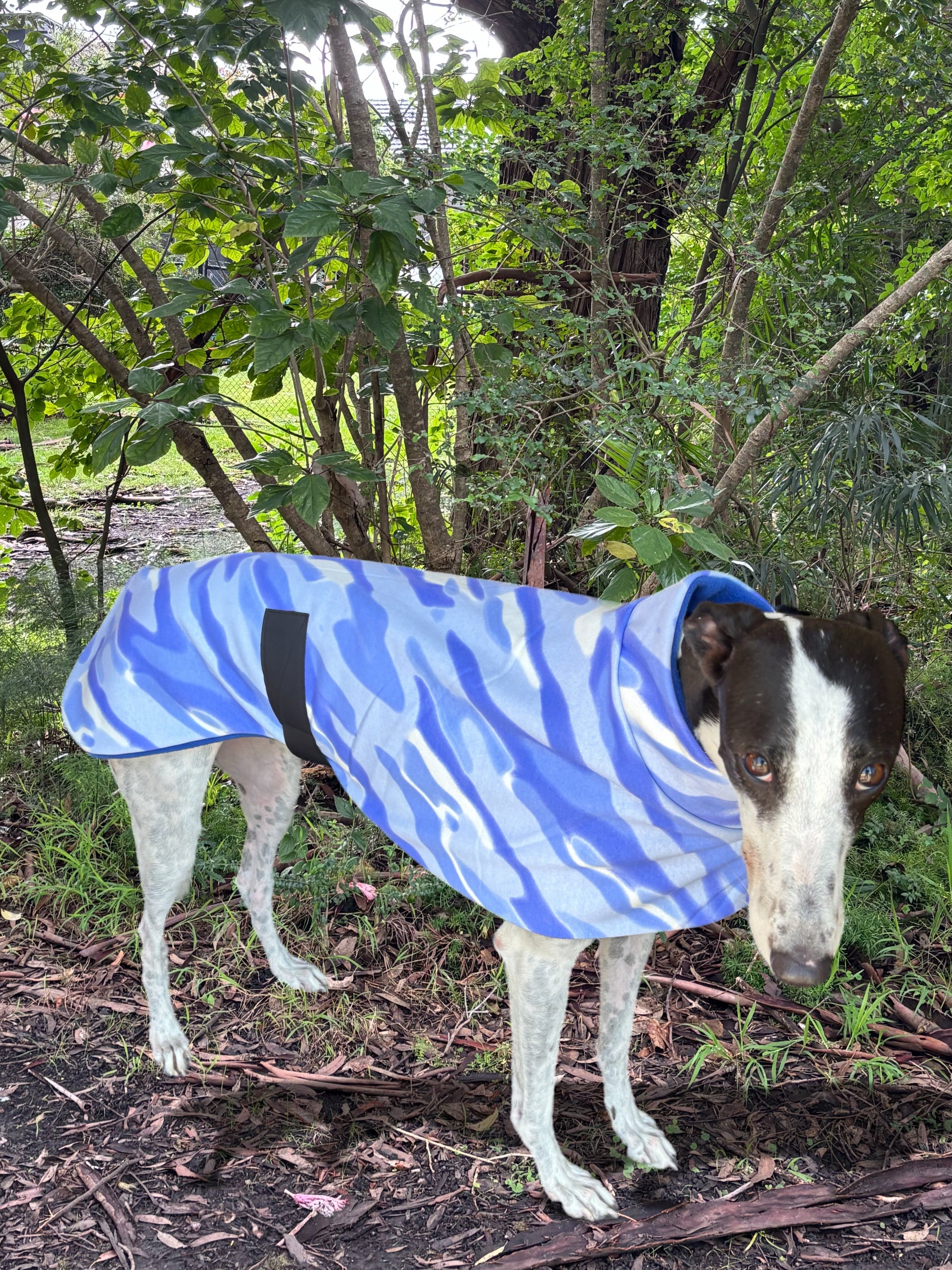 *Every coat comes with a fleece sleeve to place over the Velcro belly band if required for a softer feel against your hound’s tummy