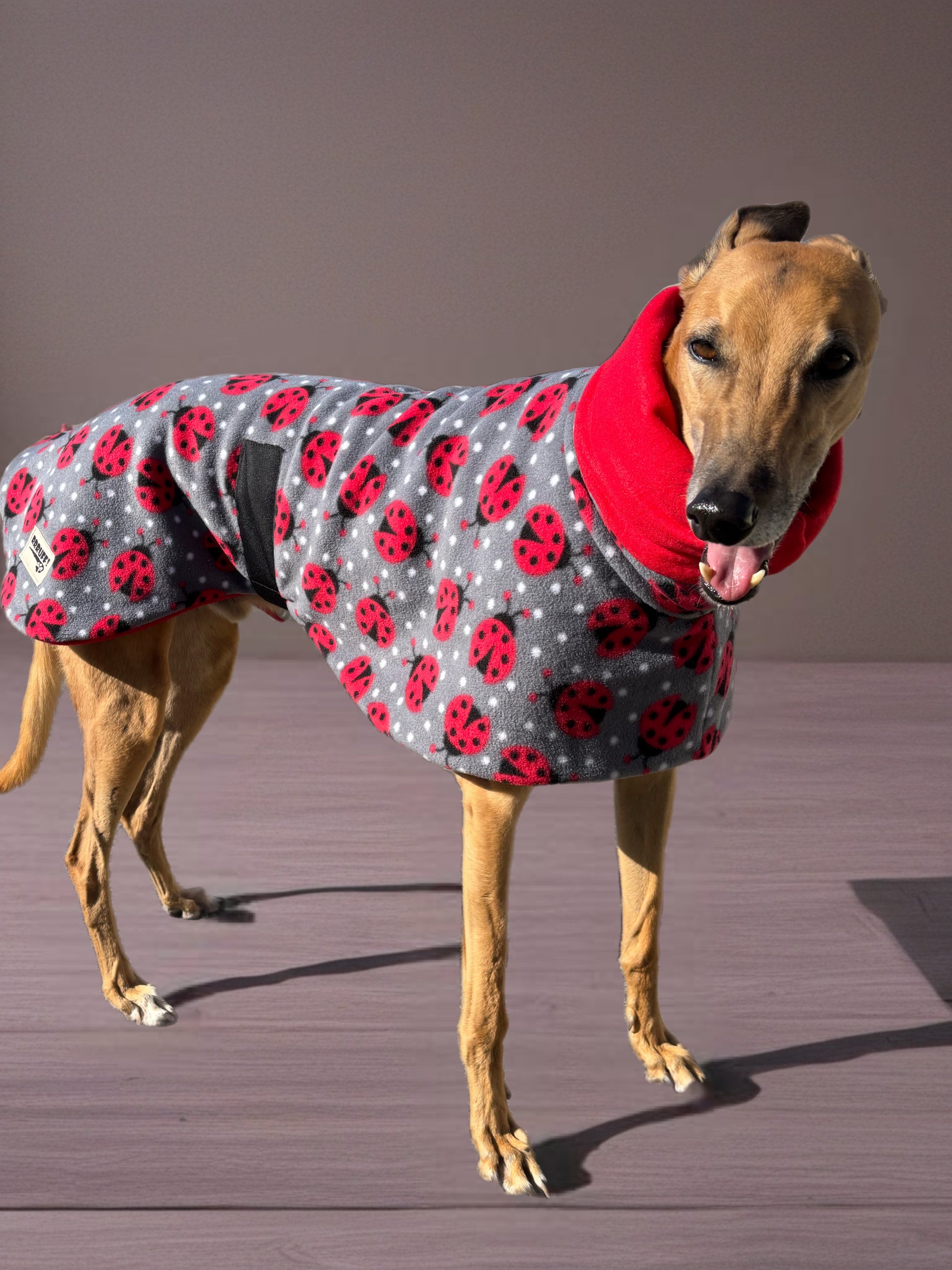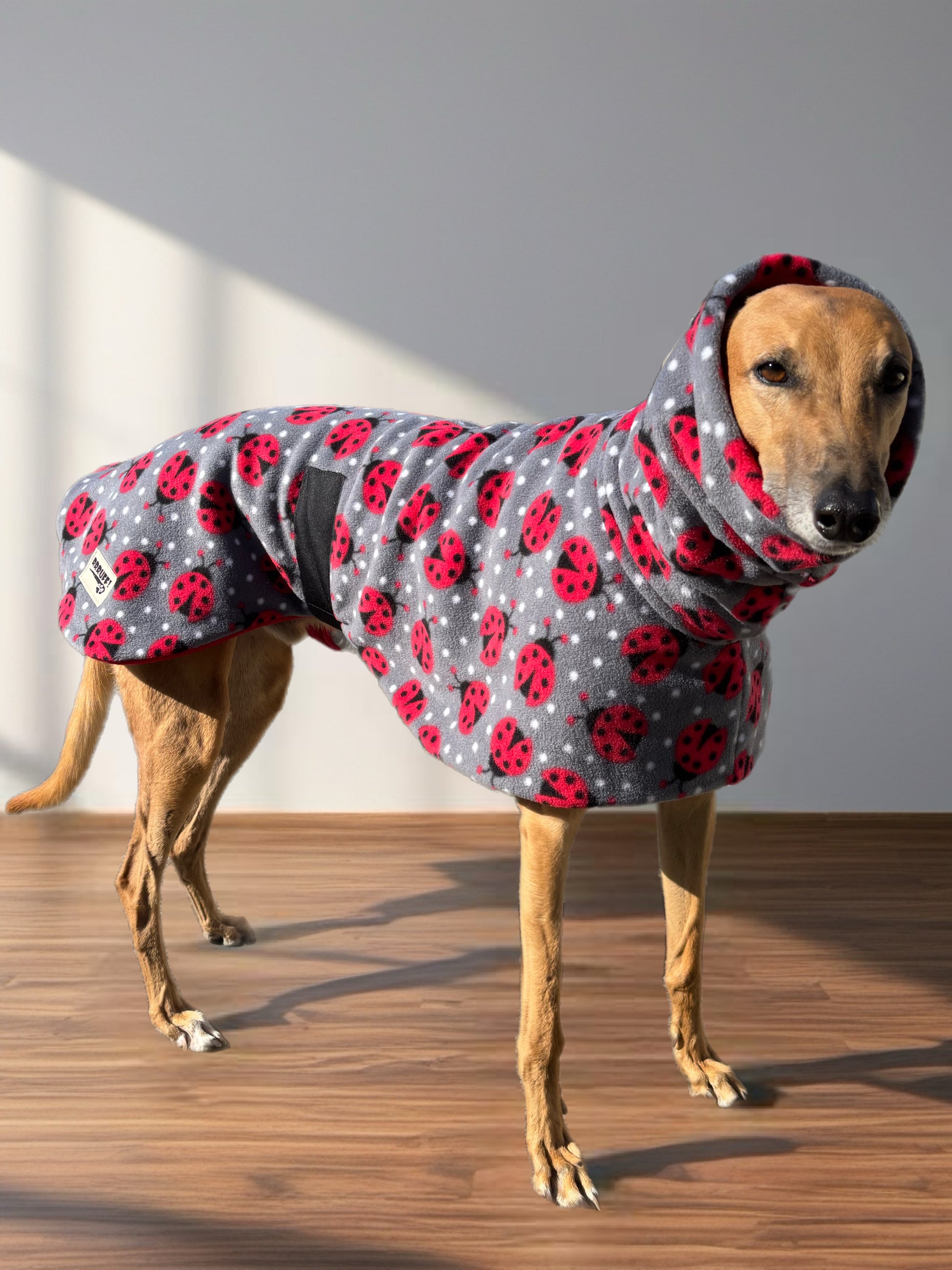 Ladybird Greyhound Deluxe coat rug, extra thick double polar fleece washable extra wide hoodie, limited edition
