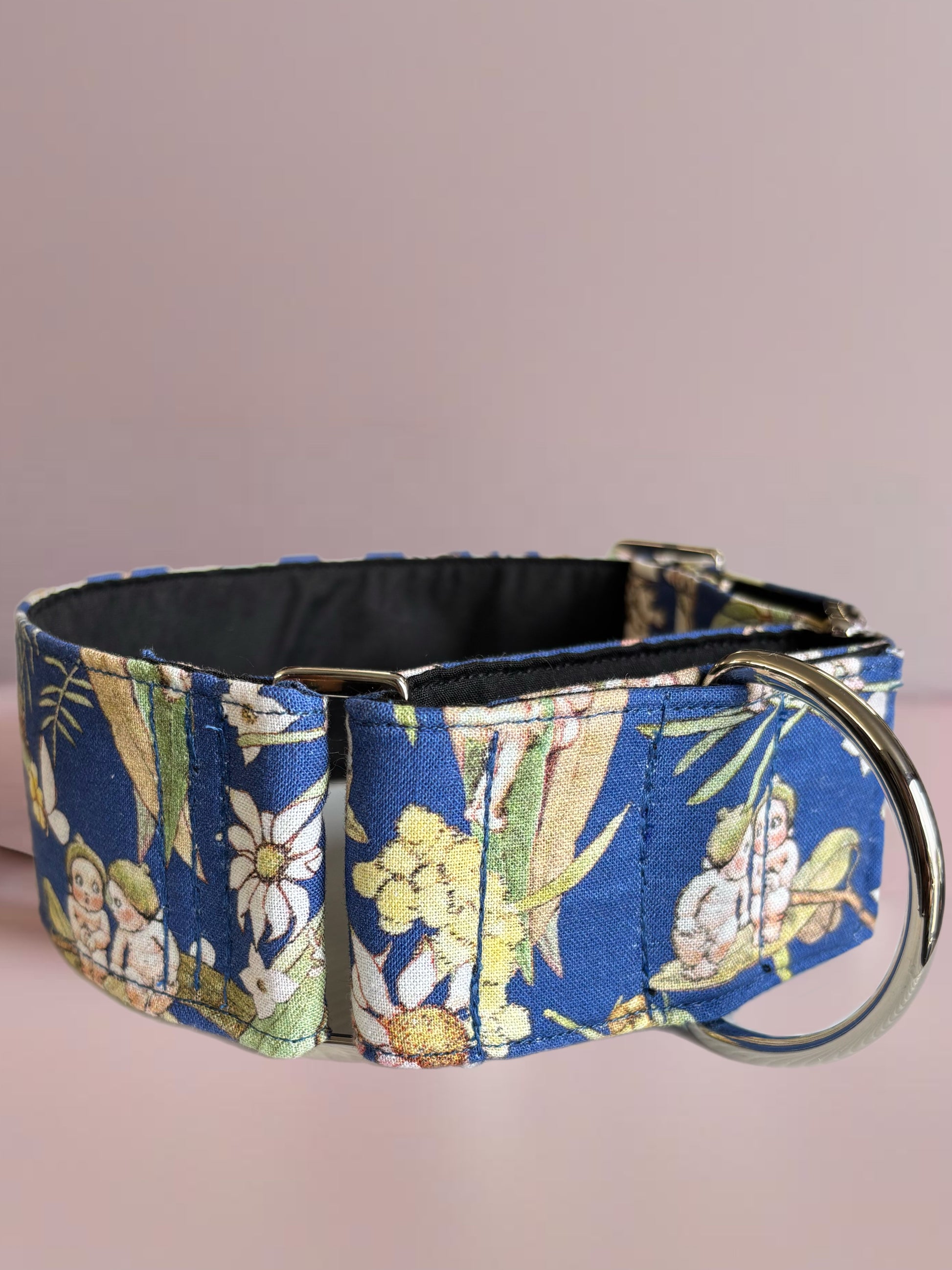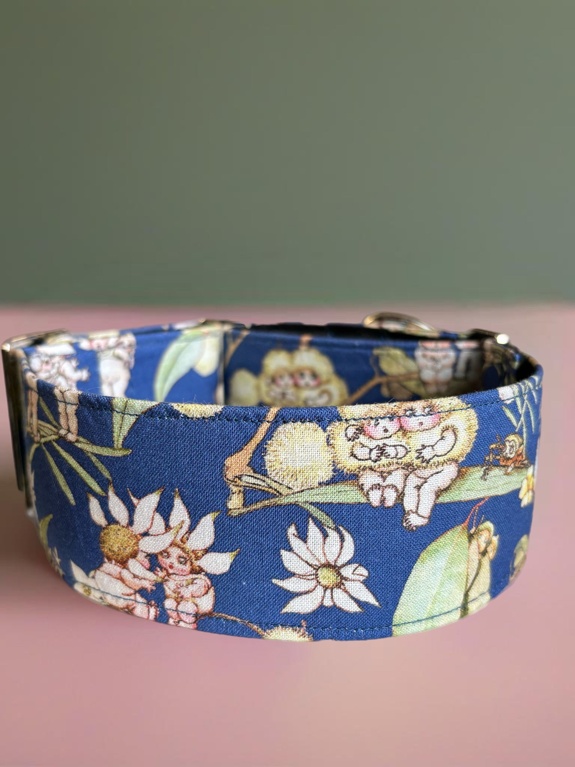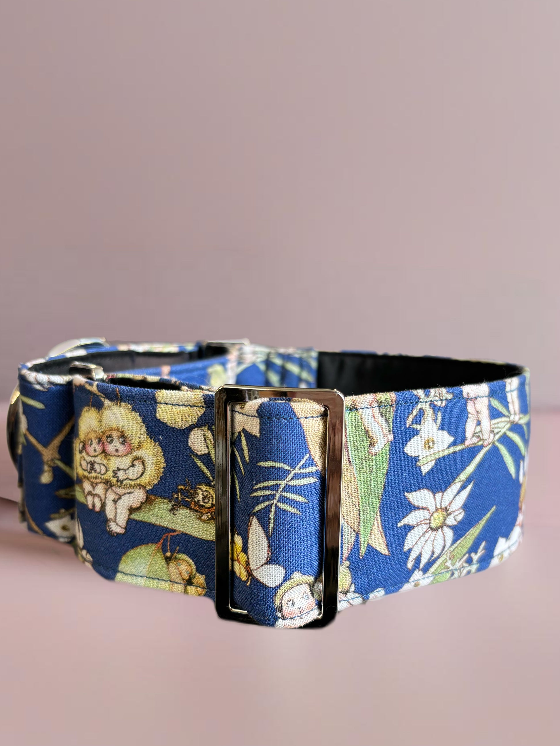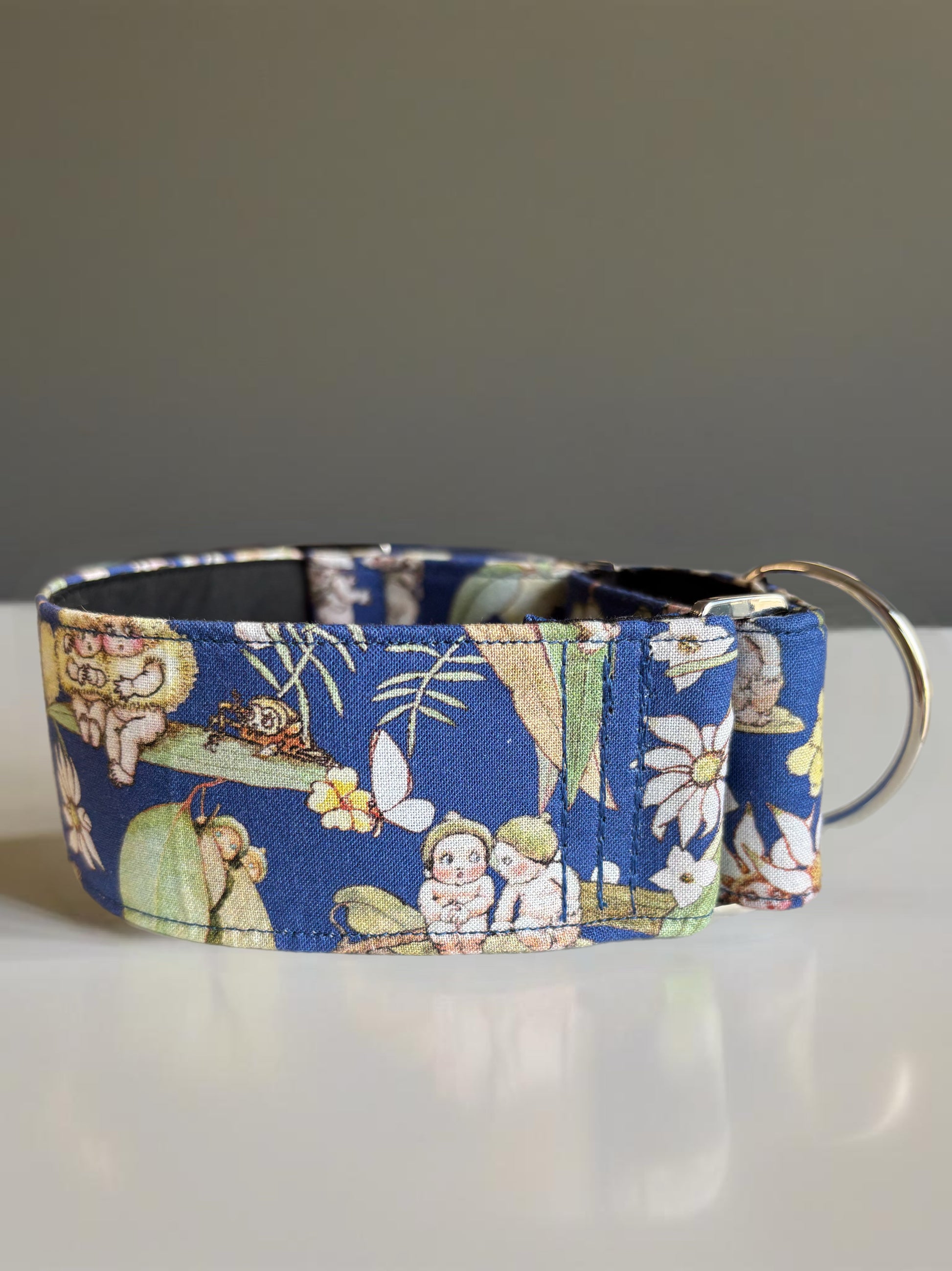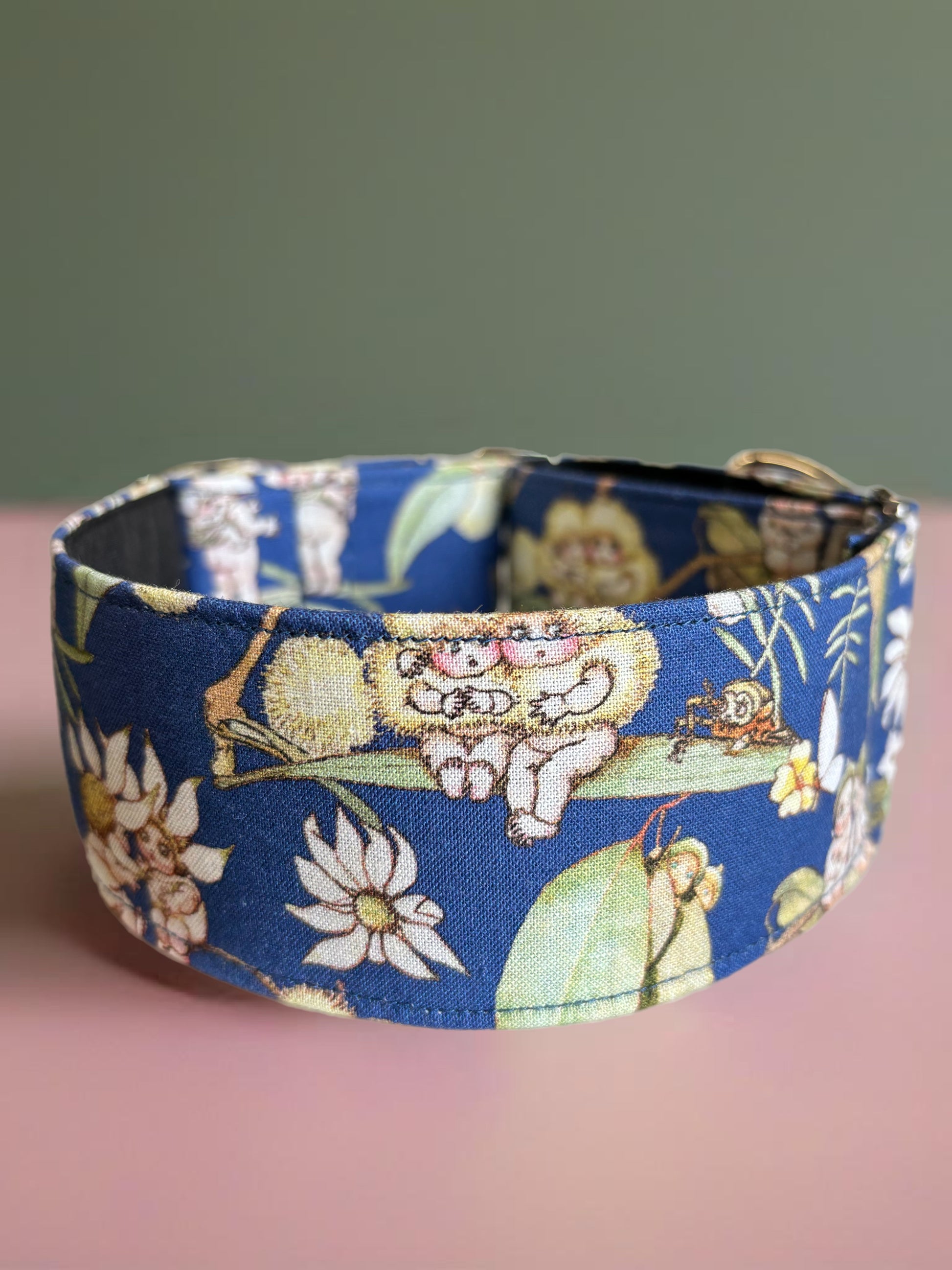 Bush babies May Gibbs designer gumnut Australiana Cotton covered greyhound Martingale collar 50mm width super soft