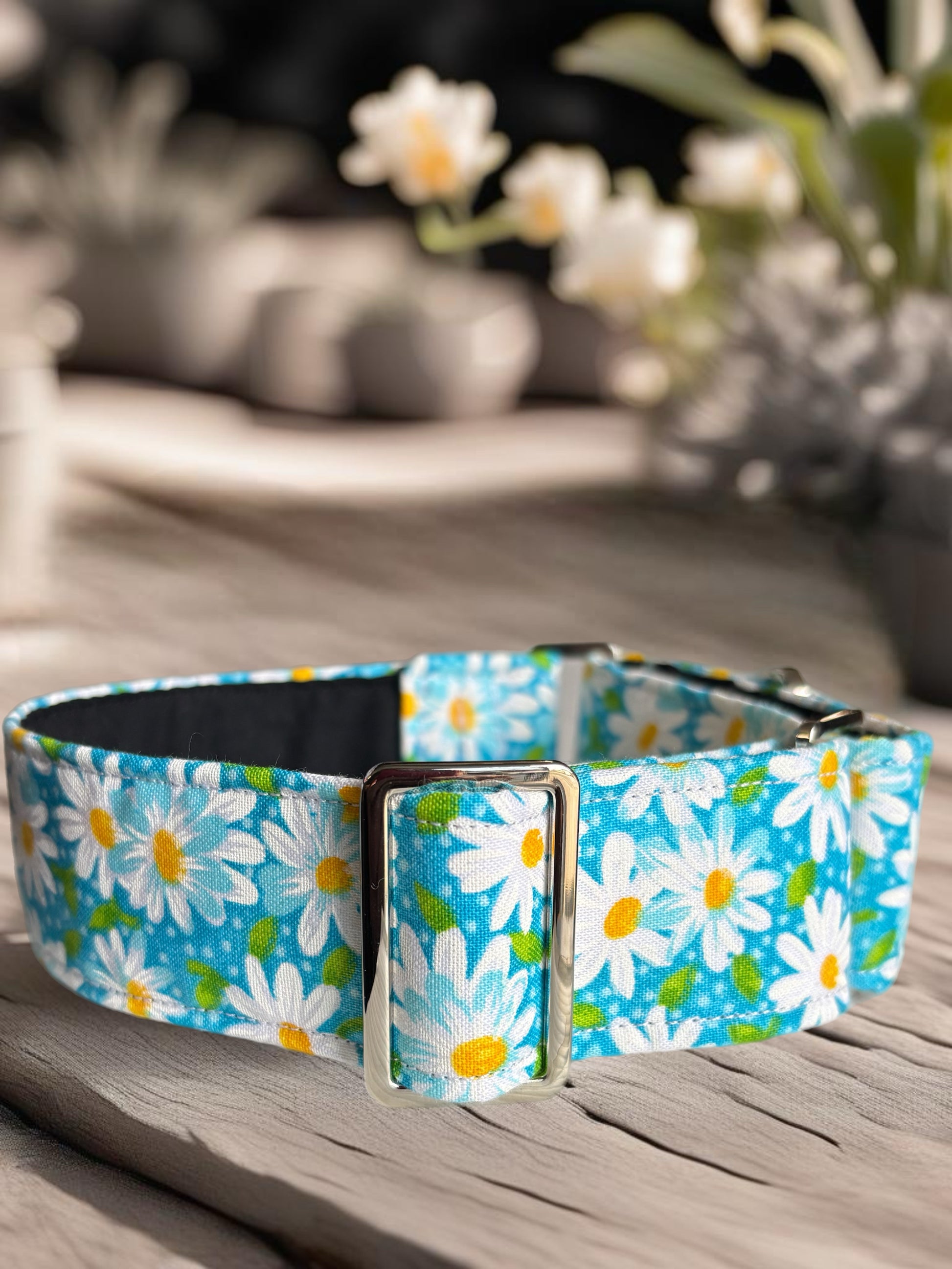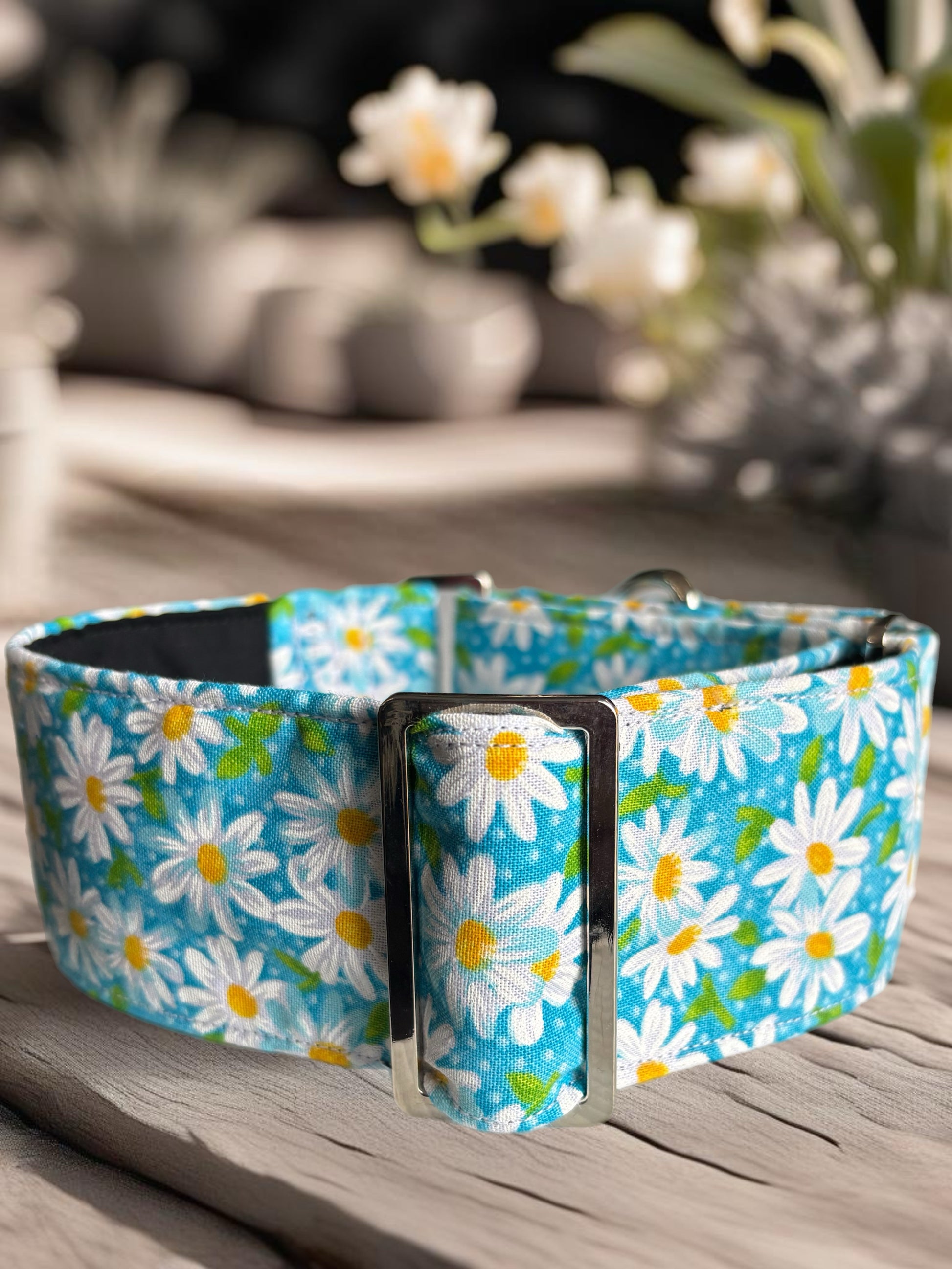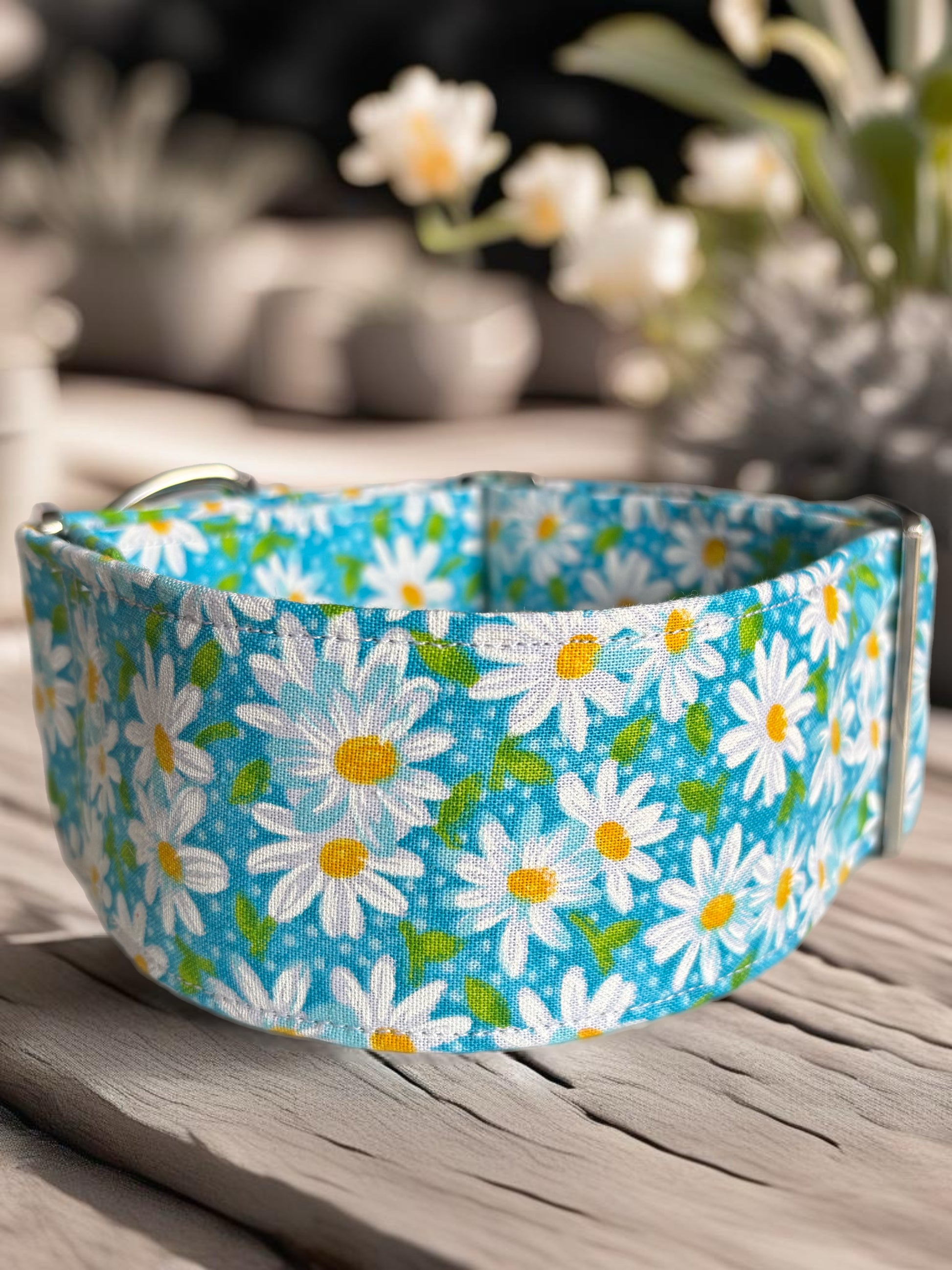 Fresh blue daisies design Cotton covered greyhound Martingale collar wide super soft