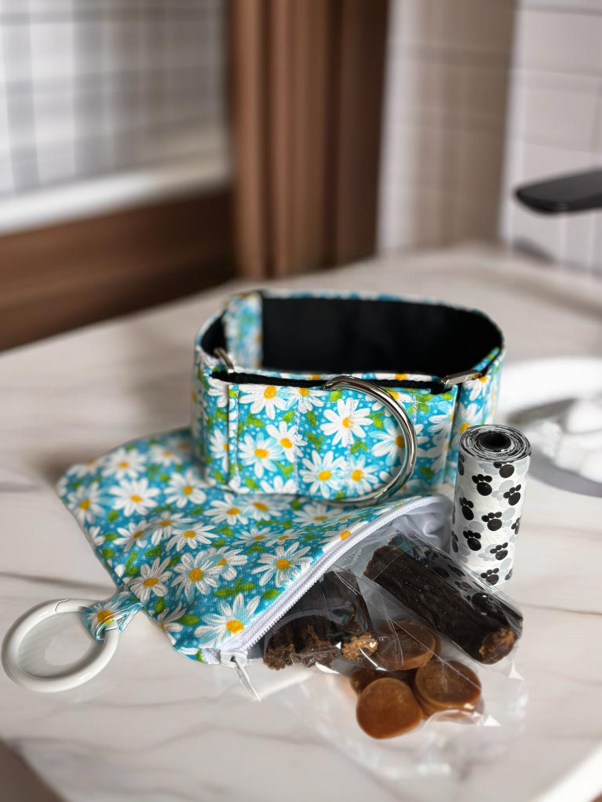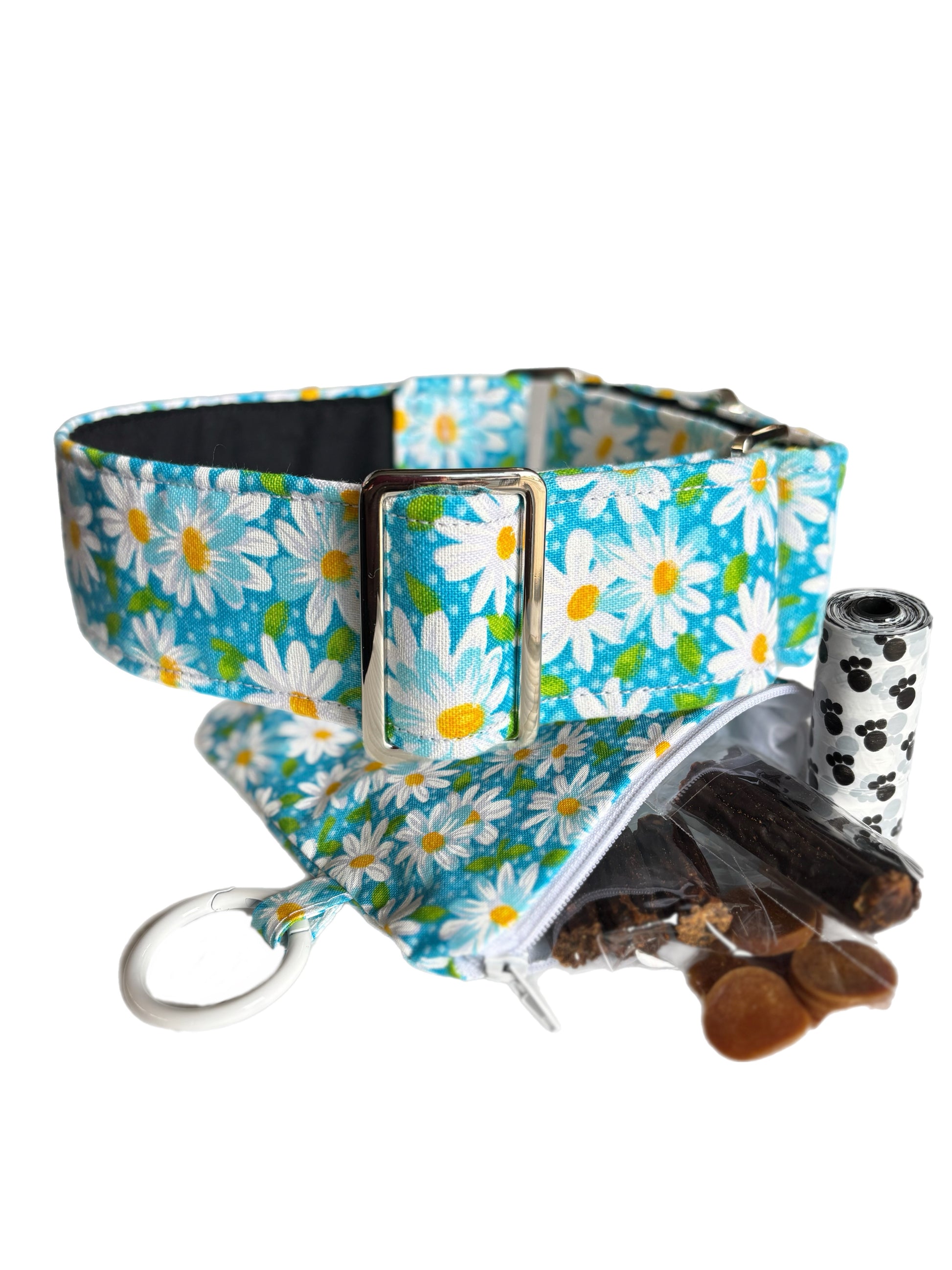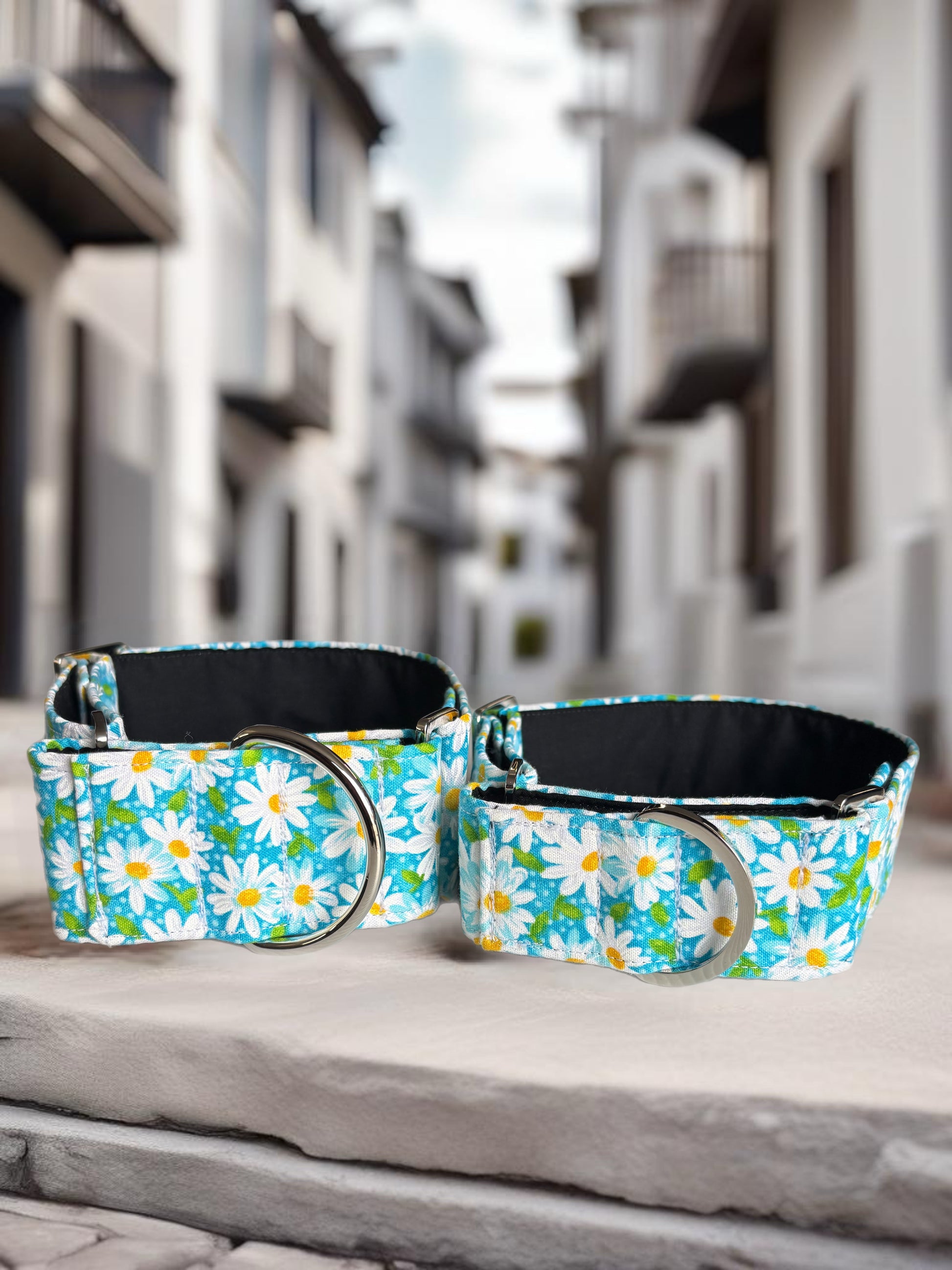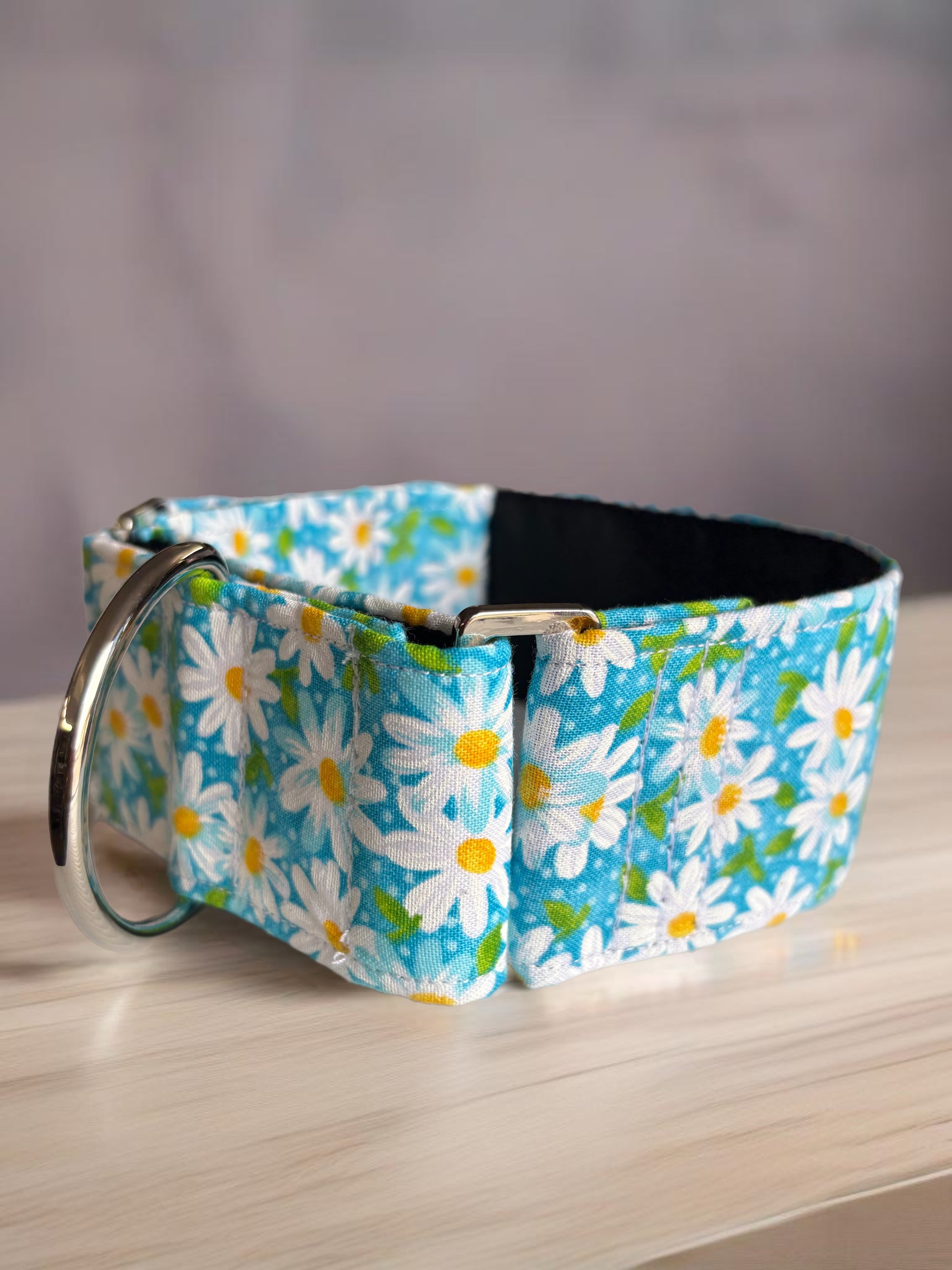 Fresh blue daisies design Cotton covered greyhound Martingale collar wide super soft
