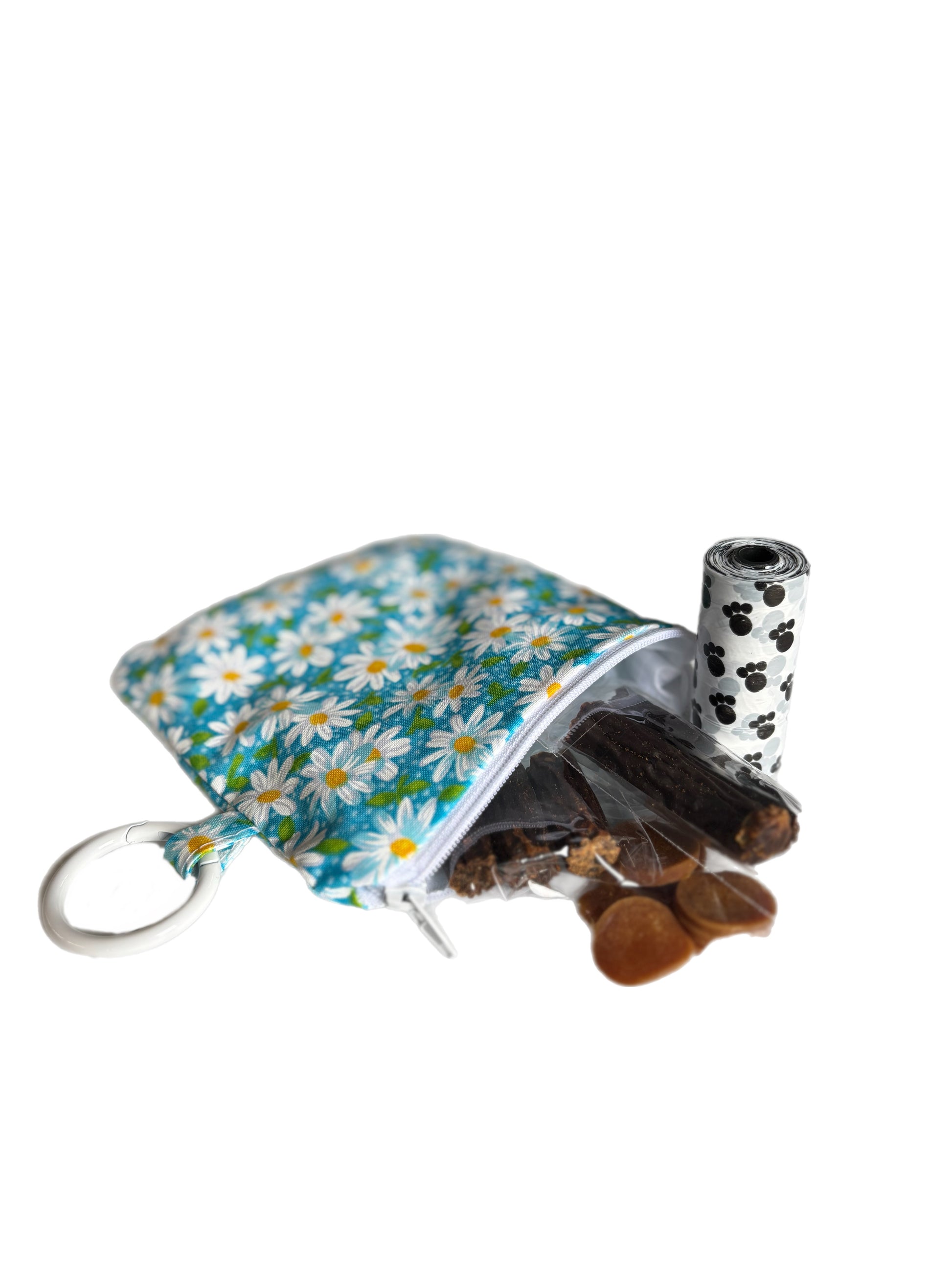 *Matching go bag is available with removable carabiner to attach to harness, belt loop, leash, anything. It also comes with a roll of poo bags and treats, ready to go!