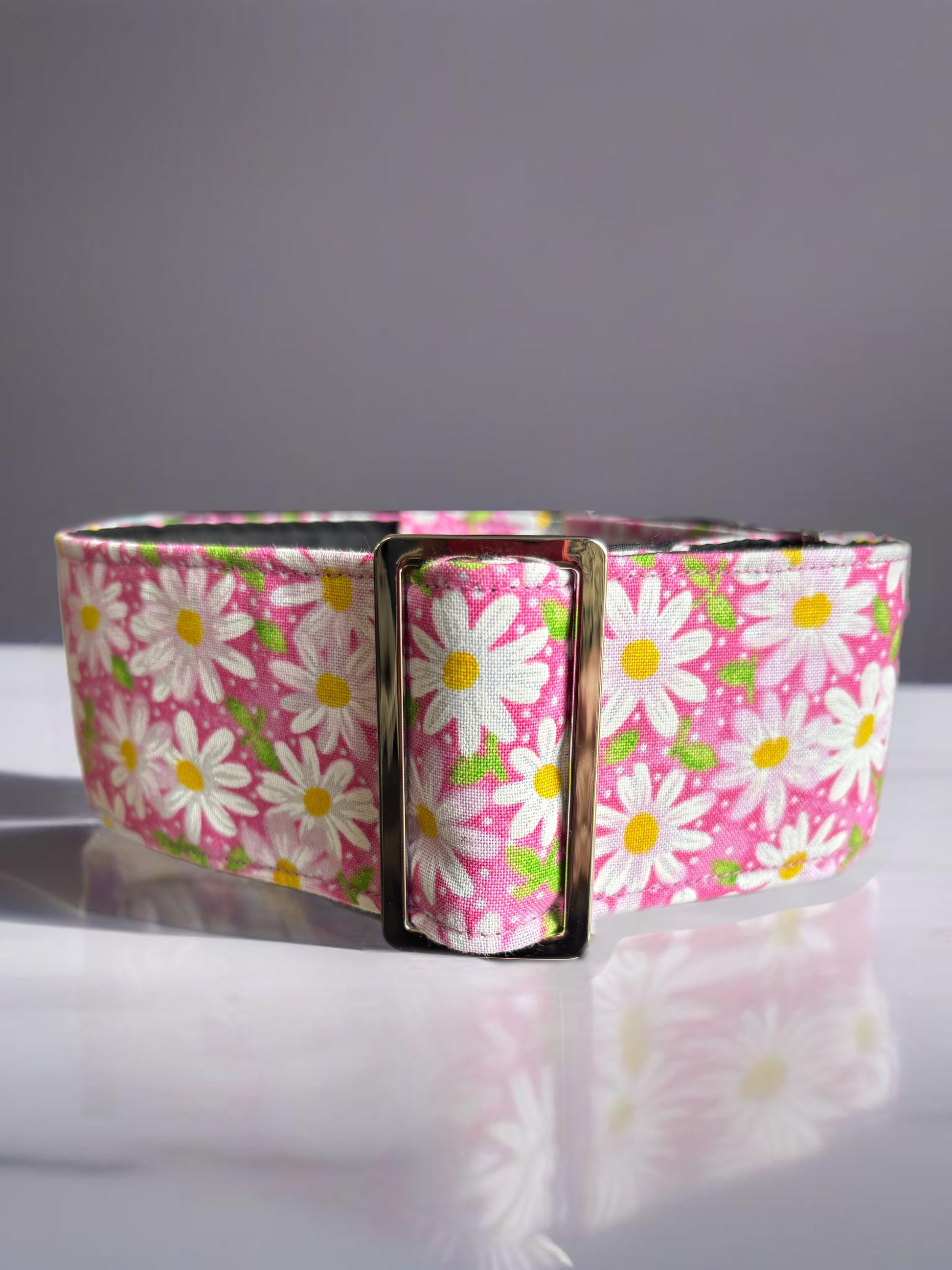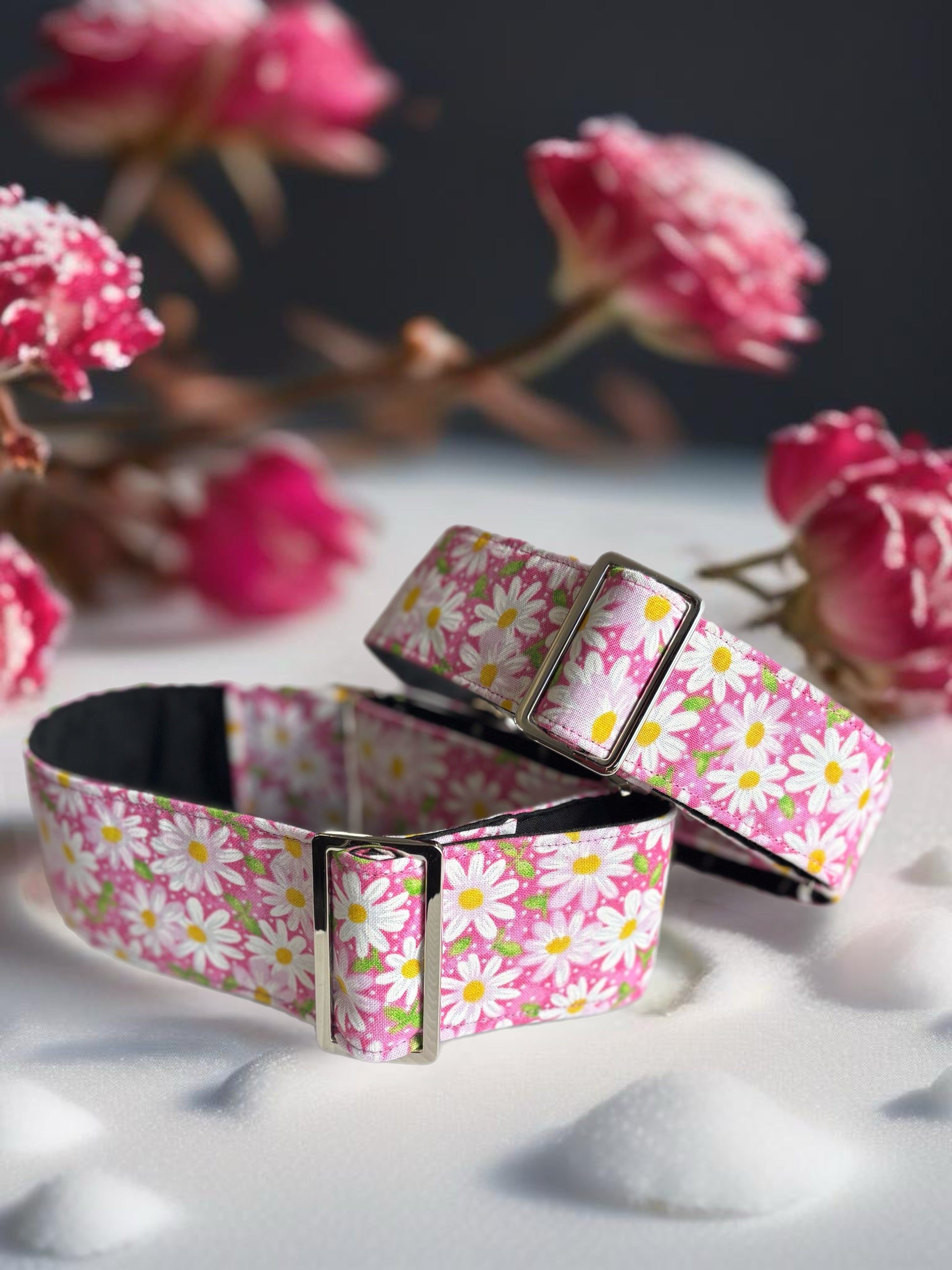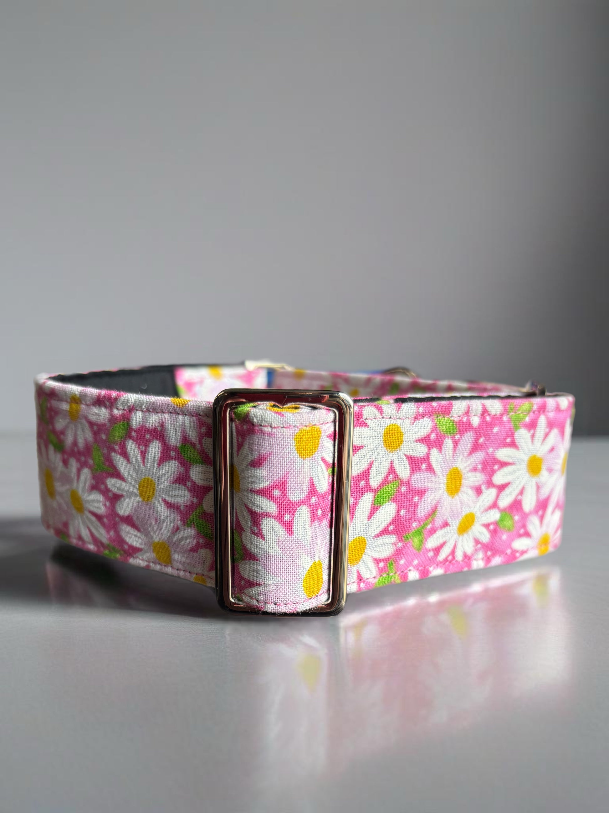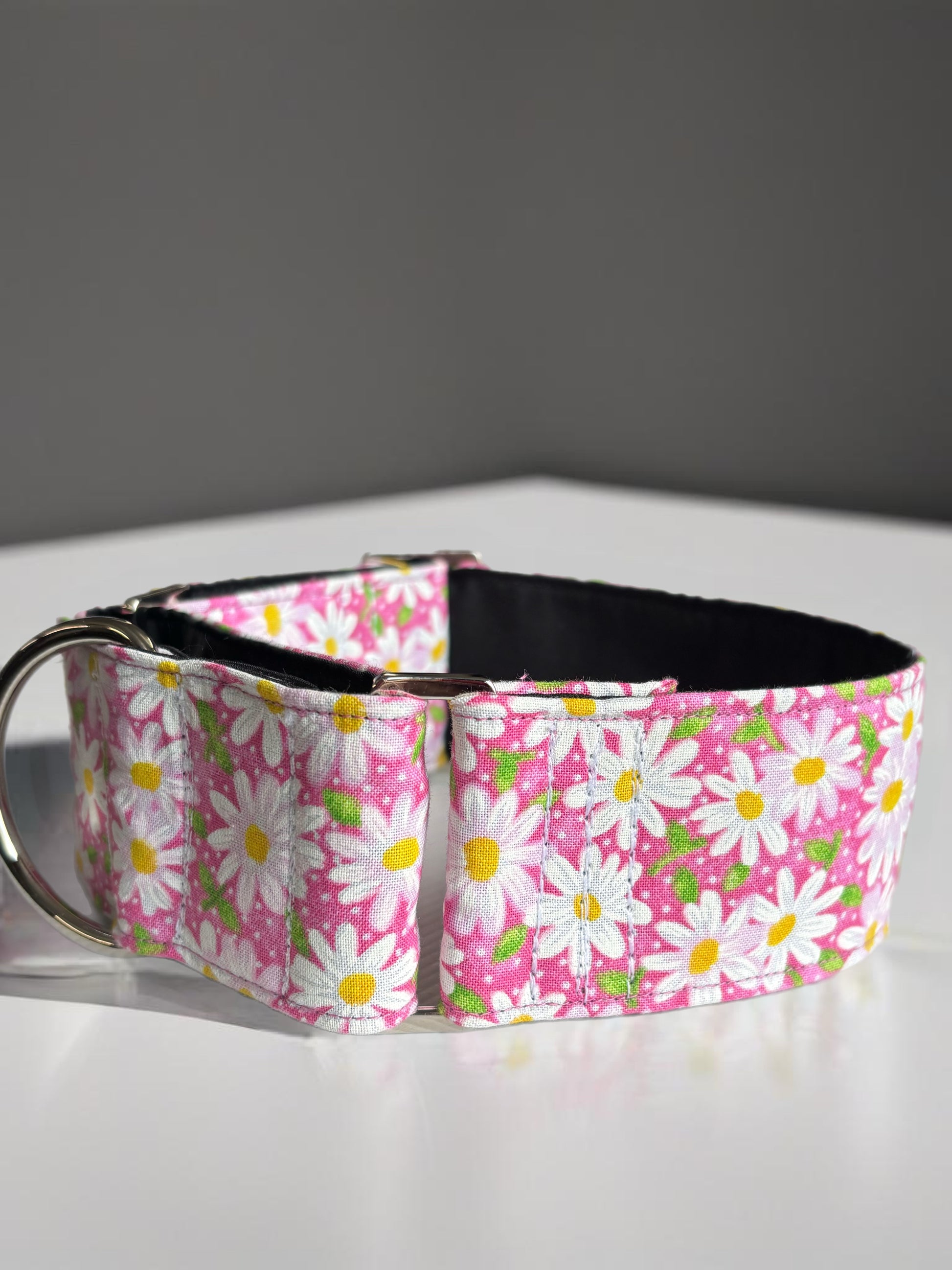 Fresh pink daisies design Cotton covered greyhound Martingale collar wide super soft