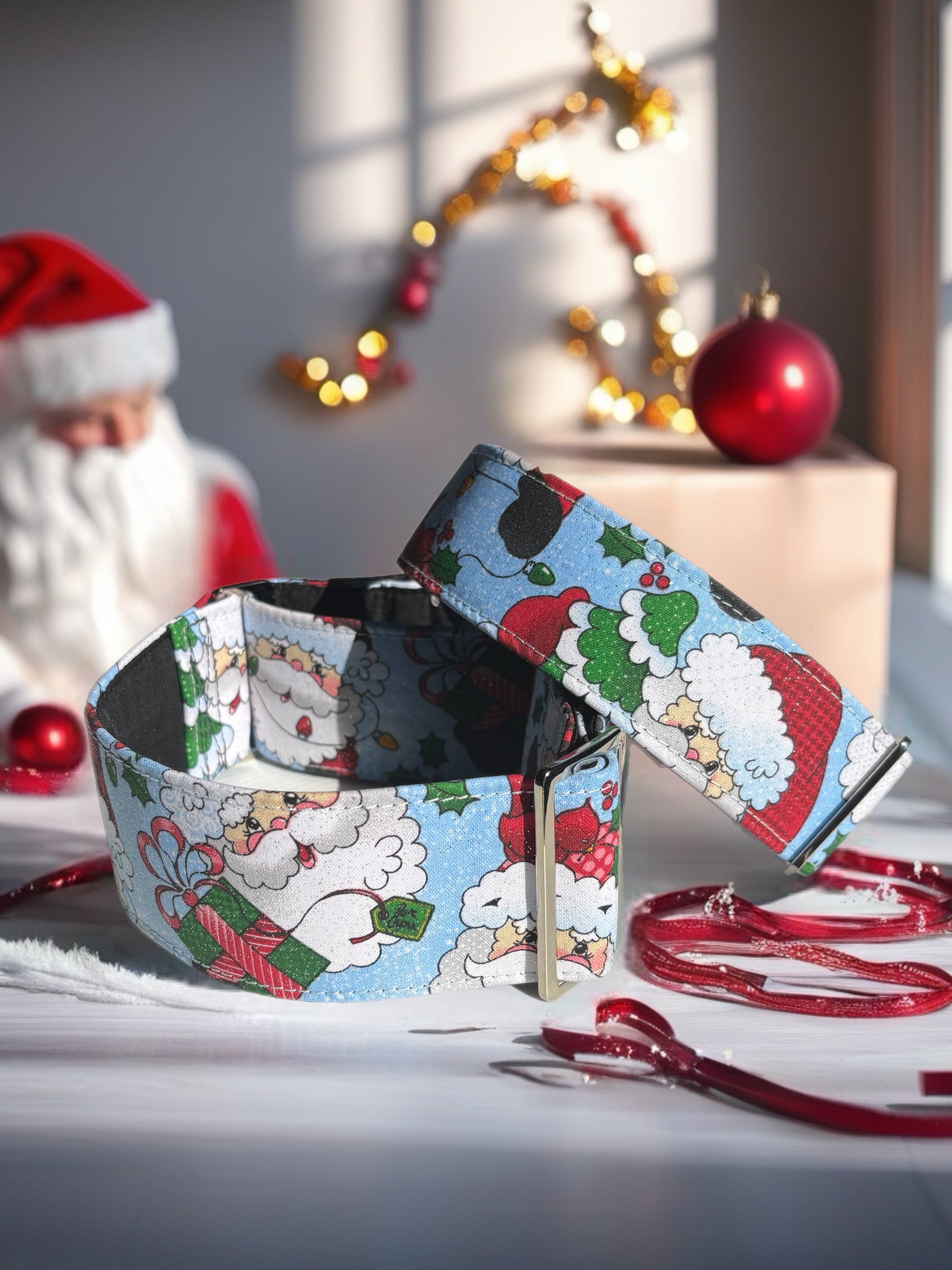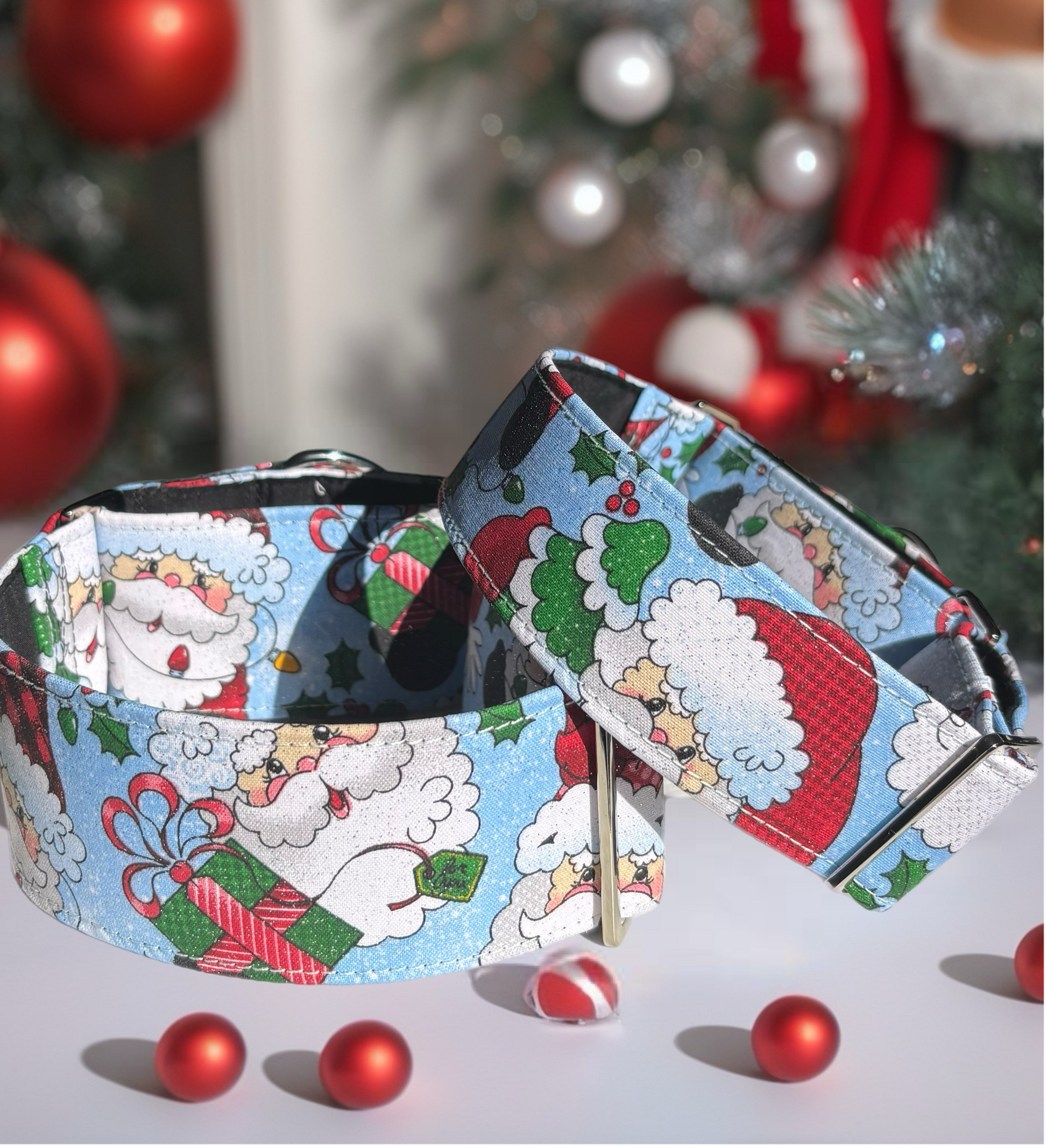 Soft blue Santa with sparkles fun greyhound Martingale collar comfortable super soft